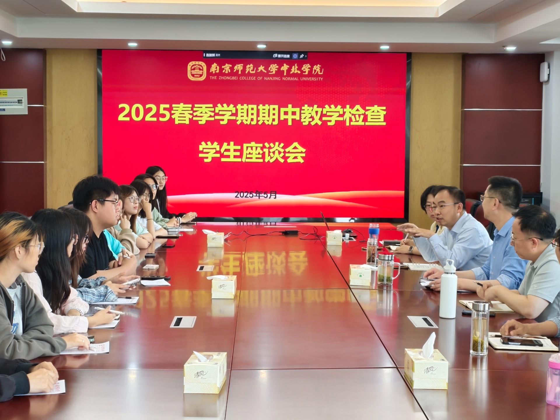 2025年是学校课堂教学质量提升年,为进一步梳理教学管理的现存问题,5月6日下午,期中教学检查师生代表座谈会在正德楼331会议室召开。中北学院副院长陈波主持会议,各二级学院教师代表、学生代表及教务处相关工作人员参加了本次座谈会。