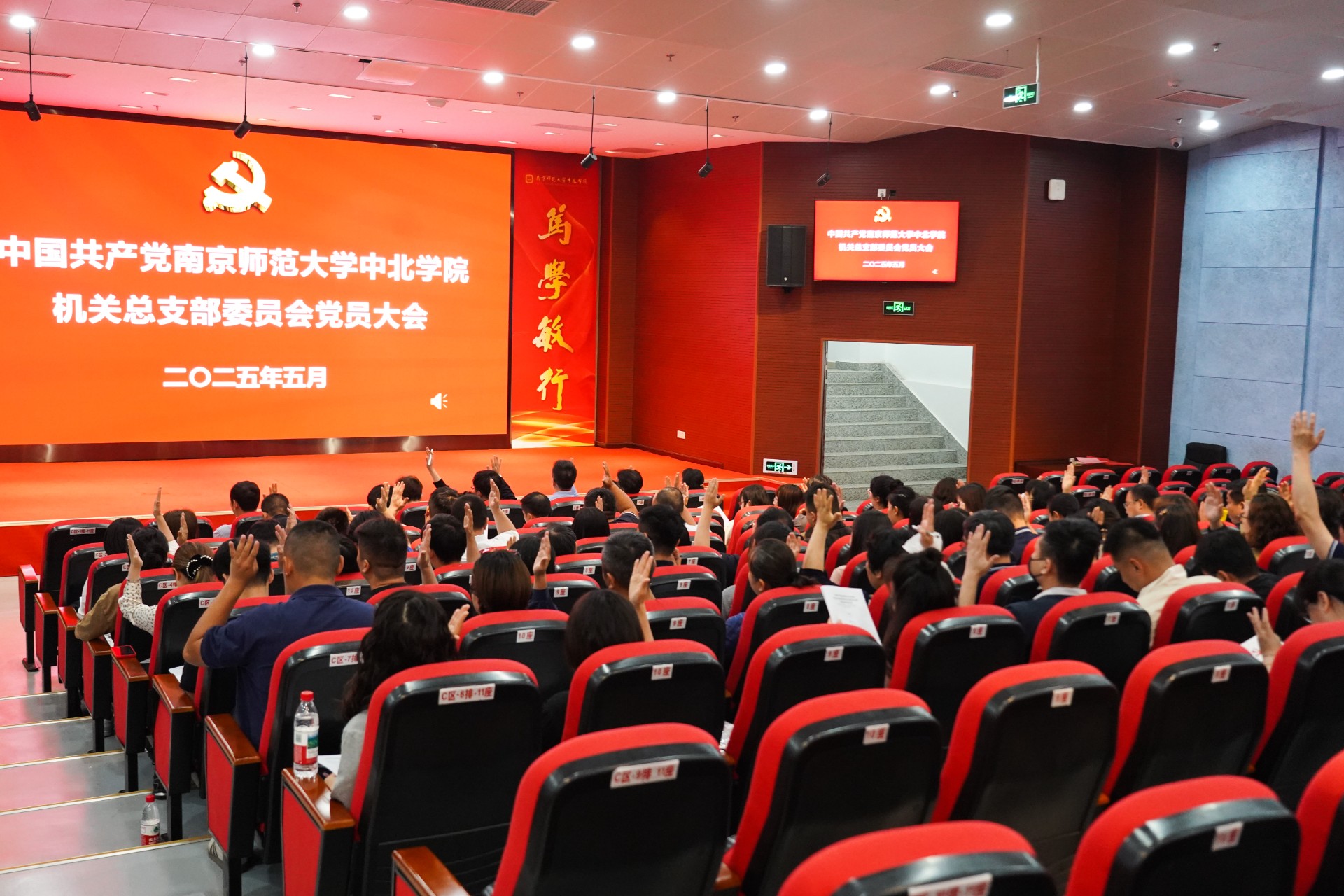 5月15日下午,中国共产党ky.com机关总支部委员会党员大会选举会议在图书馆报告厅举行。此次会议是机关全体党员政治生活中的一件大事,会议全面系统总结了4个机关直属党支部过去的工作成绩,明确了机关党总支未来三年的奋进蓝图,选举产生了机关党总支第一届委员会。南师大中北学院院长戴传超、党委书记周燕、副院长陈波、党委副书记邵新一、副院长夏宏全、徐永辉、纪委书记李春艳参加会议,机关党总支全体党员齐聚一堂,共同见证这一重要时刻。