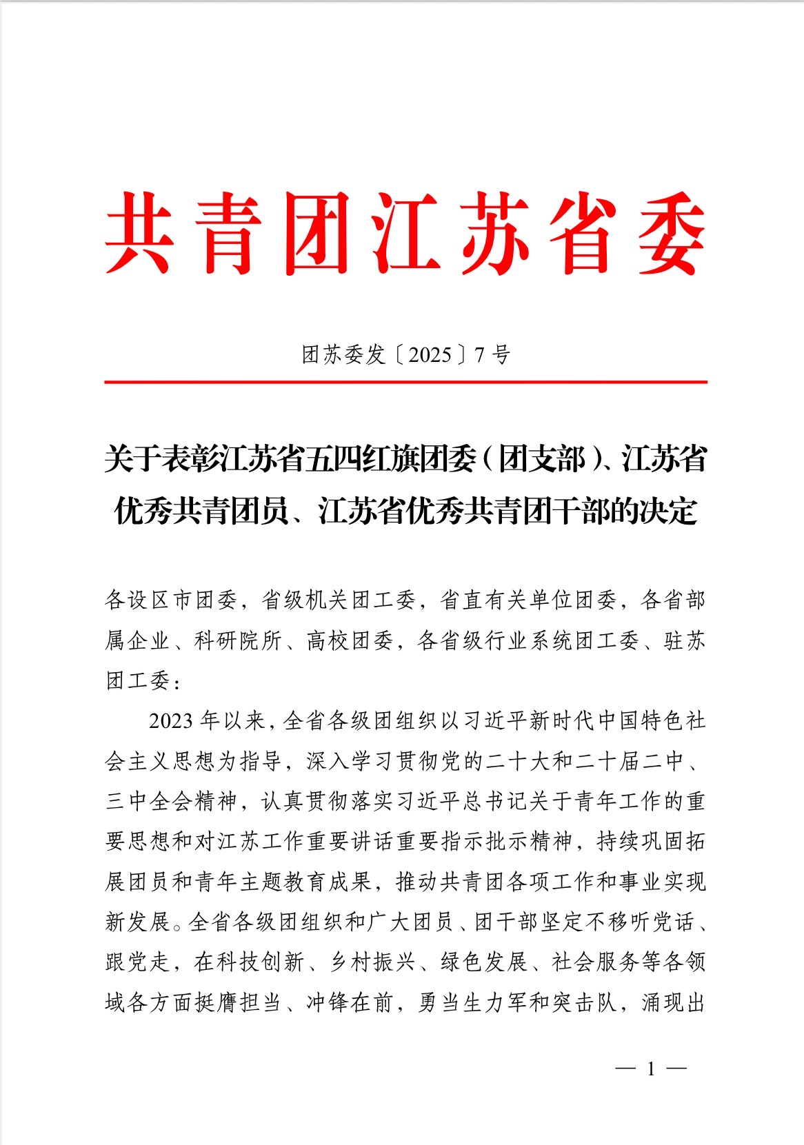 喜报:我校团委荣获2025年“江苏省五四红旗团委”称号