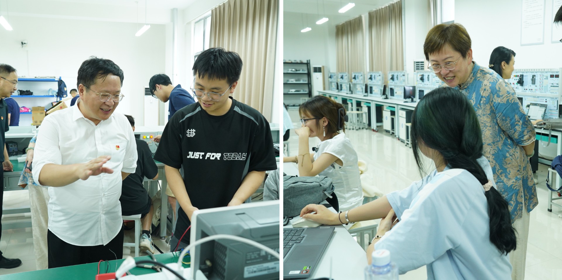 来到全国大学生电子设计竞赛备赛现场,校领导询问了参赛同学有关备赛情况,提醒同学们注意劳逸结合,积极备赛,以最佳状态投入到比赛中。