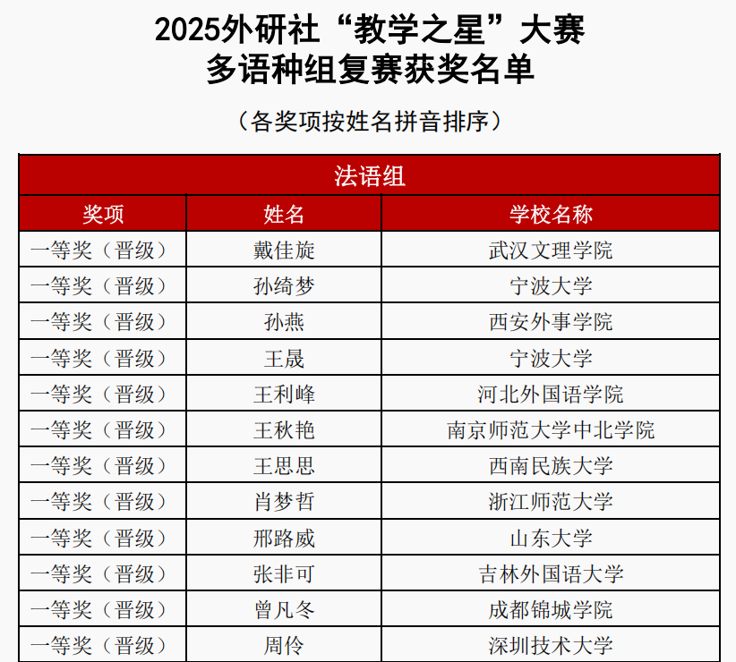喜报:我校教师在2025年外研社“教学之星”全国大赛(法语组)荣获佳绩