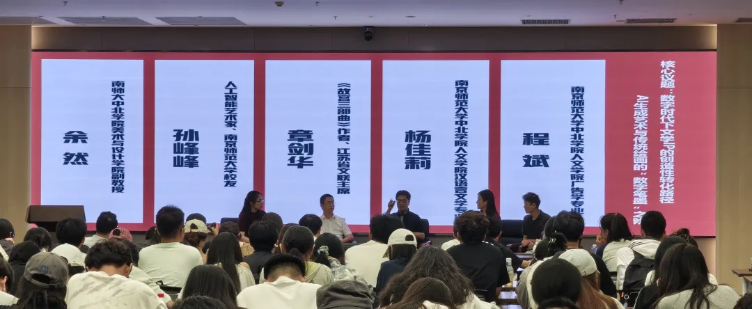 活动最后,美术与设计学院副教授余然以学生视角出发,抛出“美术学子应具备哪些能力在人工智能快速发展的背景下突破自我”的问题,章剑华主席提出“五力齐发”可帮助艺术学子找到答案,分别是学习力、创造力、策划力、审美力与执行力。他特别提及审美能力、跨学科能力,以及“融合”与“虚构”能力的价值,同时结合微短剧创作趋势,深入挖掘生活题材,从日常中汲取创作灵感。孙峰峰则建议同学们打破专业边界,拓宽艺术视野。这些宝贵建议为同学们提供了学习上的指导。