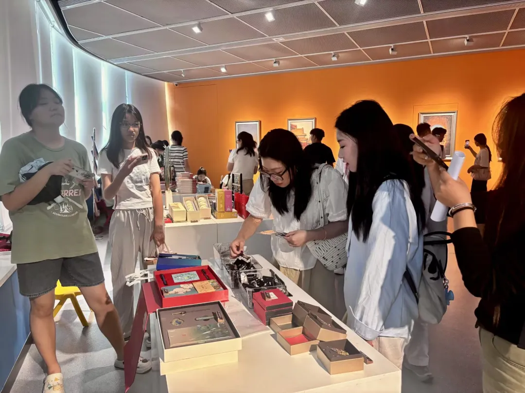 展厅以人工智能技术为载体,将故宫文物主题与现代艺术手法相融合,让展出作品以生动创新的形式呈现,同学们仿佛穿越时空,亲身感受故宫“守宝传奇”,纷纷驻足交流,在传统与科技的碰撞交融中,领略故宫文化的独特魅力。