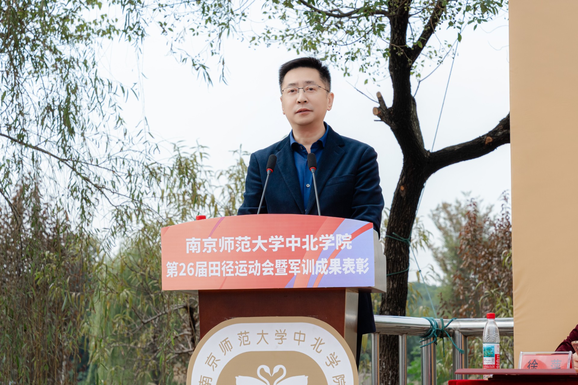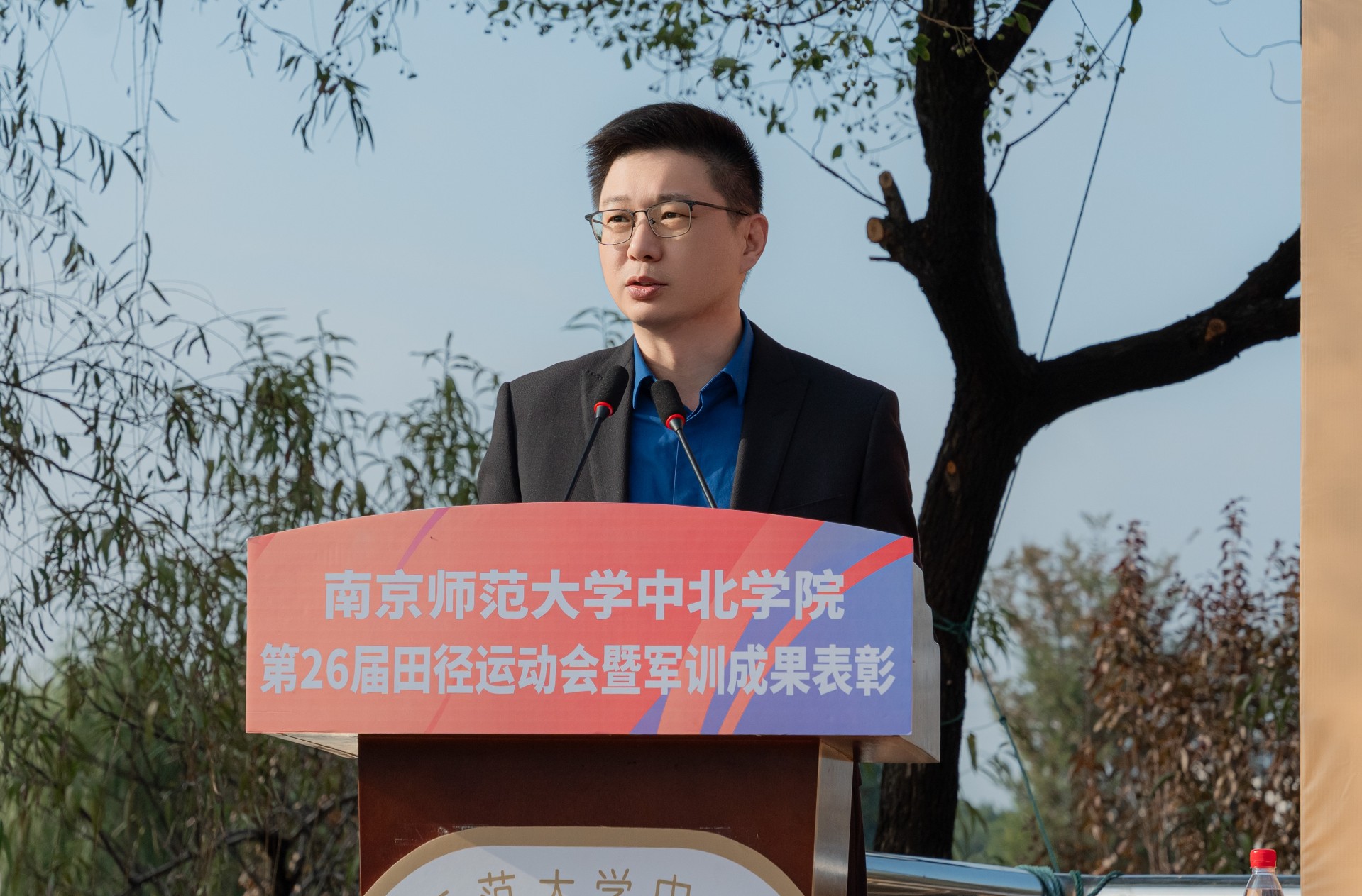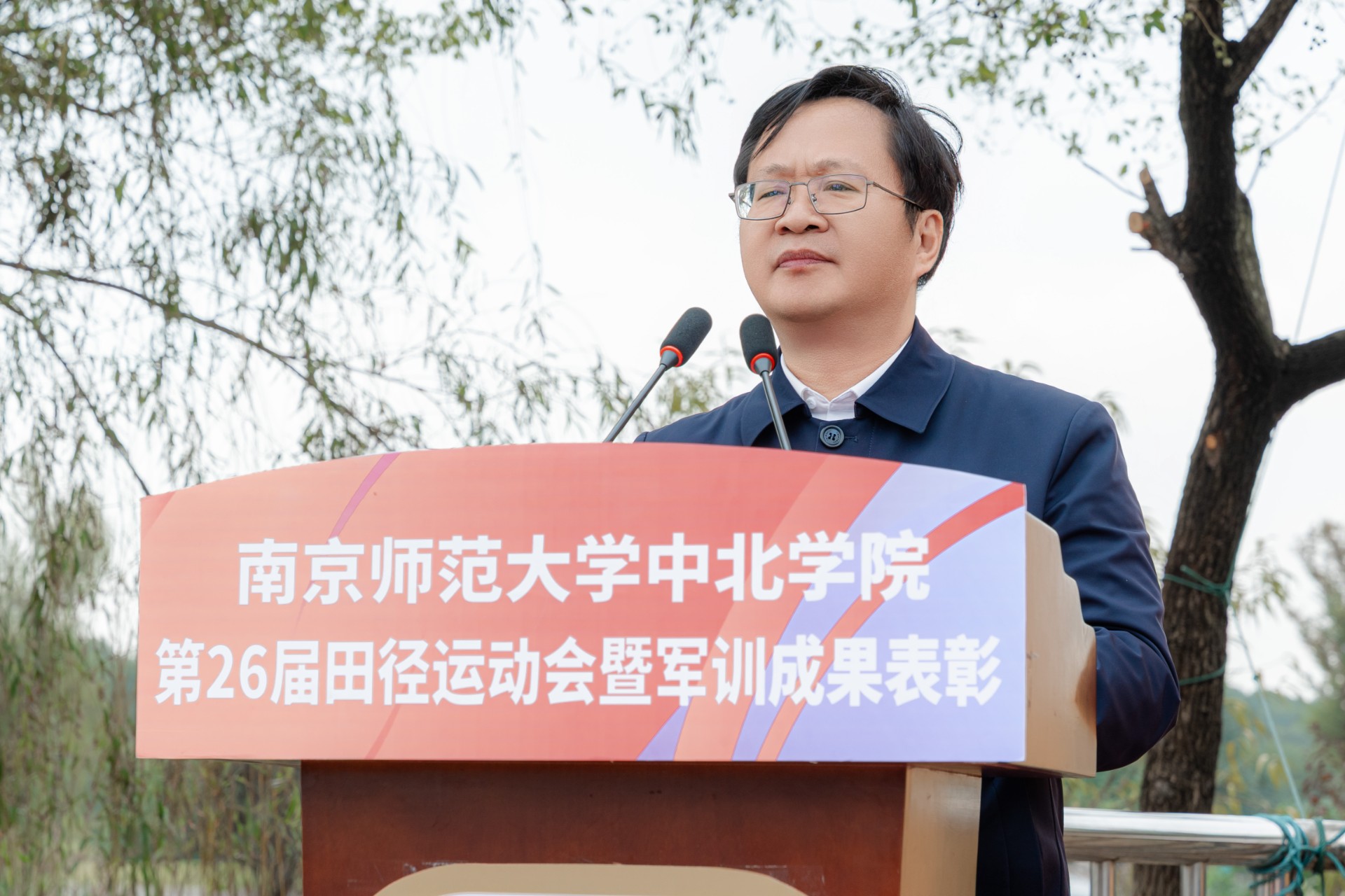学院党委书记周燕致开幕词。她指出,体育是教育的重要组成部分,是落实“五育并举”、促进学生全面发展的重要途径。她回顾了近年来学院在体育育人方面取得的成果,从晨练八段锦到军训拉练,从“镇超”赛场到省级赛事,中北师生始终以拼搏之姿、奋进之态,诠释着“自强不息、顽强拼搏”的体育精神。她希望全体运动员在赛场上赛出风格、赛出水平,发扬“更快、更高、更强”的奥运精神,并勉励大家将体育精神融入日常学习与生活,以更强健的体魄、更坚韧的意志迎接未来的挑战。