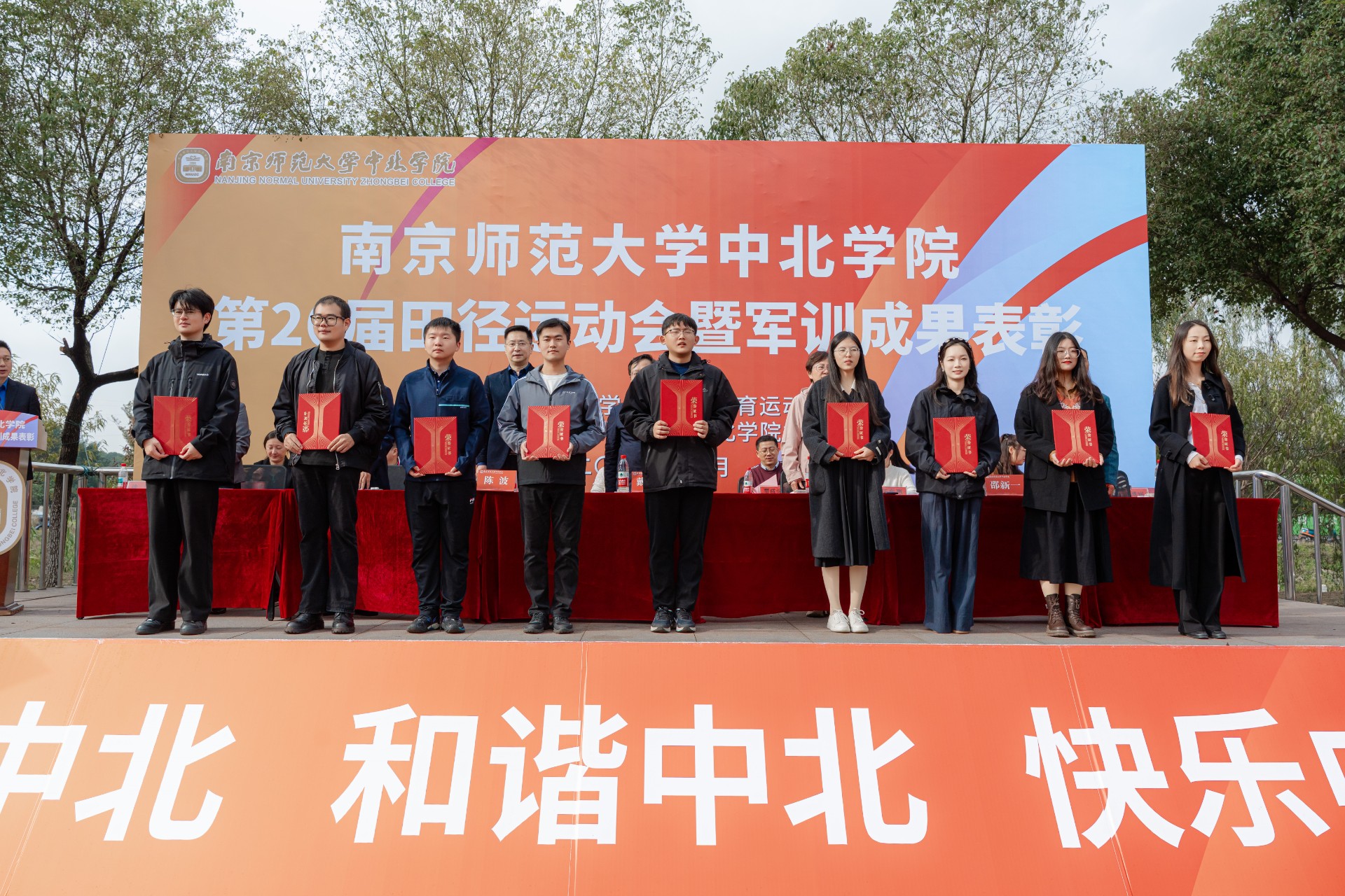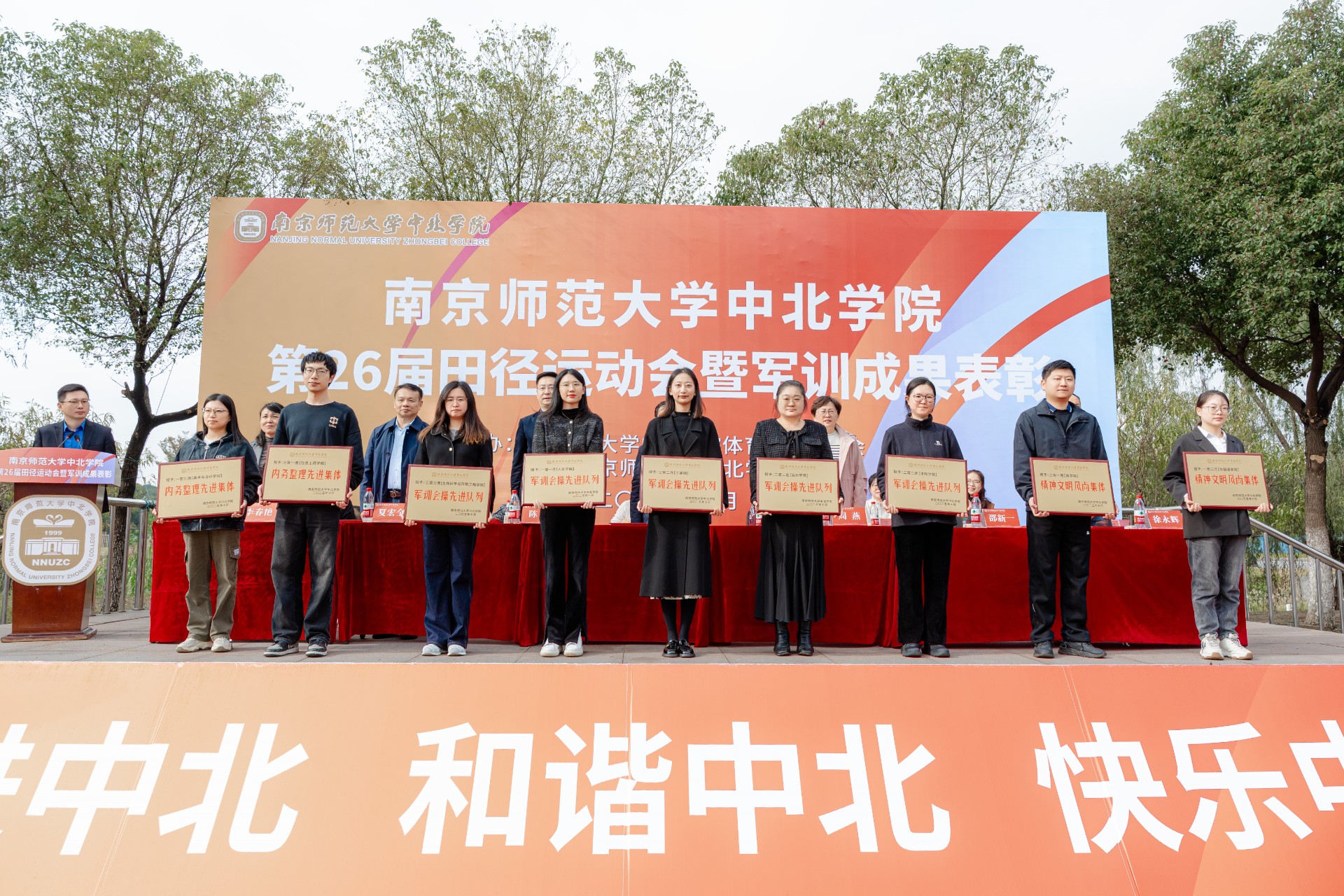 开幕式上,副院长陈波宣读了《关于表彰军训先进集体和个人的决定》。在激昂的乐曲中,军训会操先进队列、内务整理先进集体、精神文明风尚集体以及优秀带训教师、先进个人代表分批上台领奖,现场掌声不断,气氛热烈。与此同时,开幕式优秀方阵风采展示奖同步揭晓,表彰了各二级学院团结协作、追求卓越的集体精神。