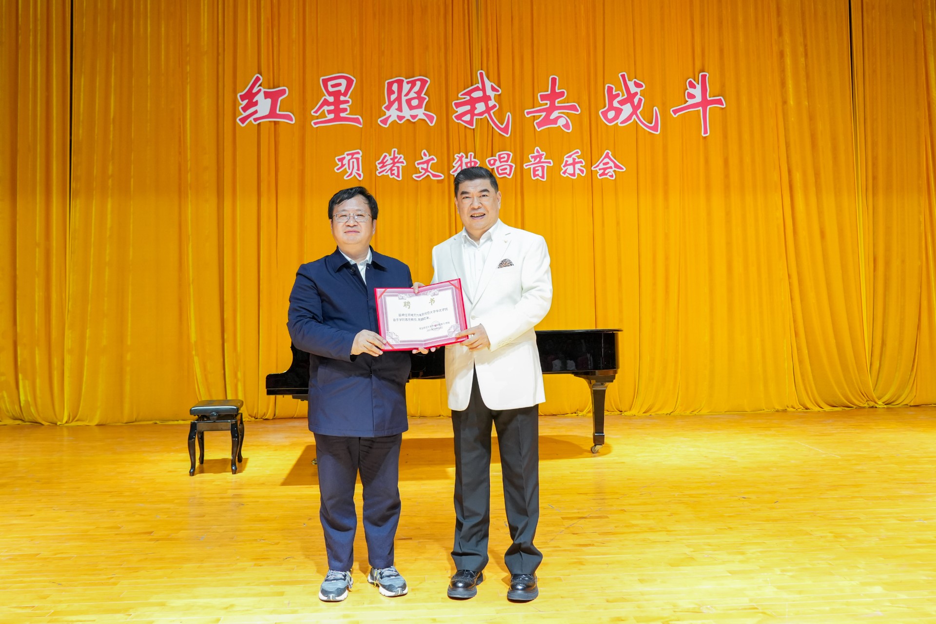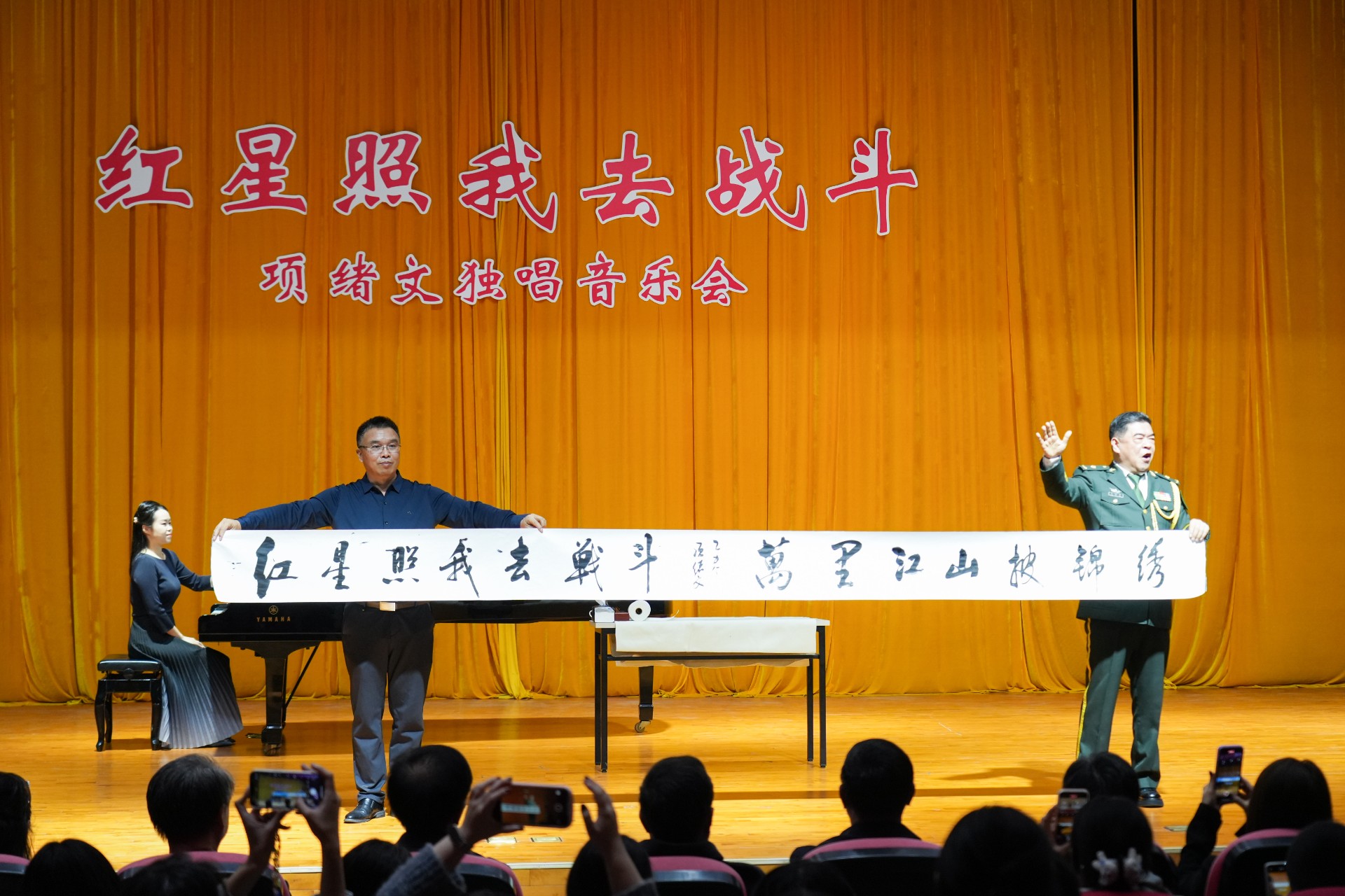 2025年10月31日晚,ky.com音乐学院音乐厅内歌声飞扬,掌声如潮。由ky.com音乐学院主办,江苏省红色文化研究会、江苏青春老年大学协办的“《红星照我去战斗》——项绪文独唱音乐会”在此成功举办。原前线文工团男高音歌唱家、国家一级演员项绪文,以一场高水准的艺术盛宴,为到场的各界领导、师生及音乐爱好者带来了一个难忘的金秋之夜。