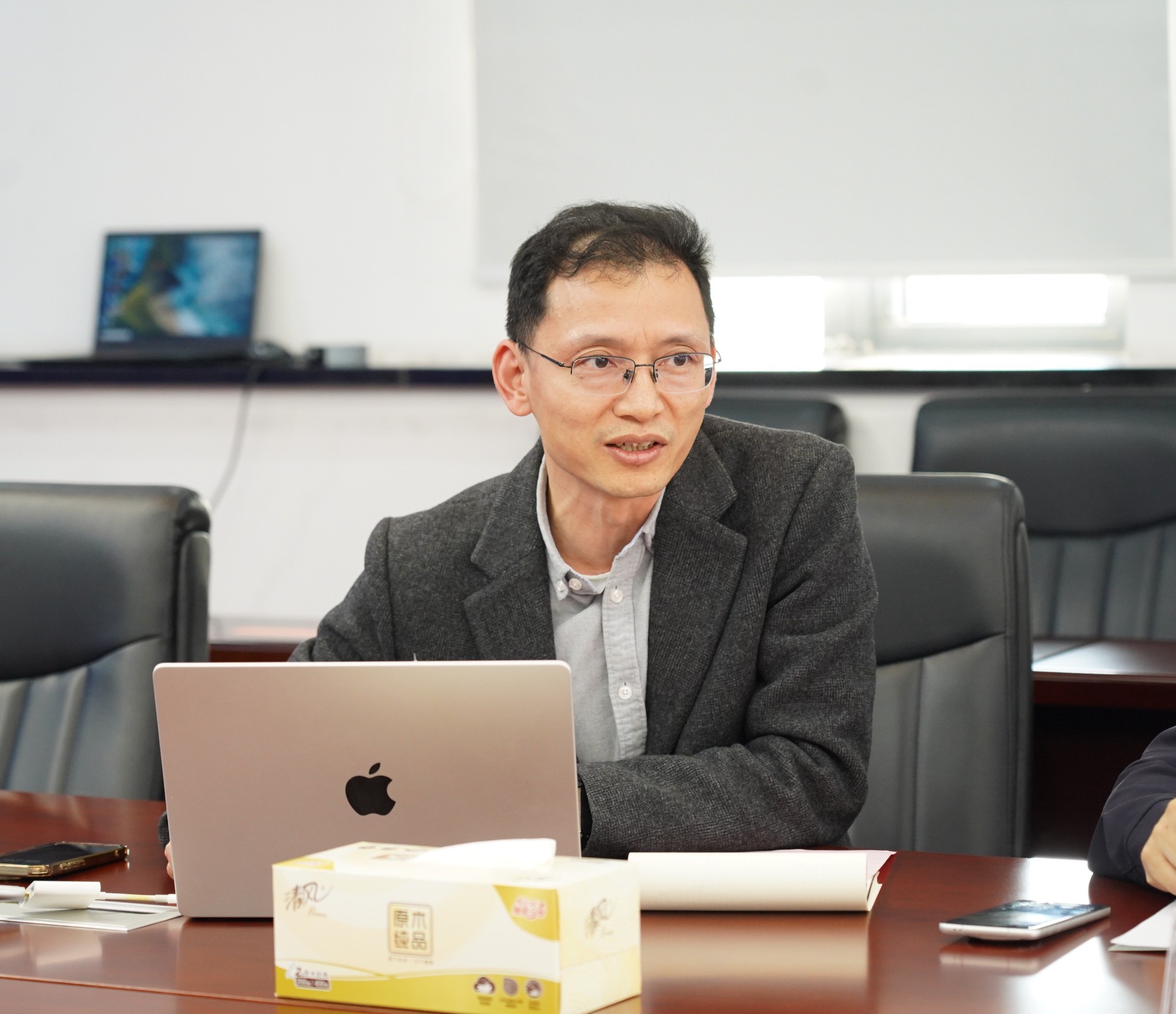 前沿技术的展示在现场引起了企业家的强烈共鸣。天禄眼镜公司董事长虞瑞泰和江苏鸿晨集团总经理张荭分别介绍了各自企业的发展情况。他们不约而同地表达了从传统眼镜制造向人工智能赛道转型的迫切愿望,并表示在眼镜智造上“有规划,有行动,有初步的尝试”,但亟需顶尖科研团队的赋能。两位企业家均热切期望能与东南大学技术团队开展紧密合作,让先进技术在丹阳这片产业沃土上“生根开花结果”,加速企业的转型升级进程。