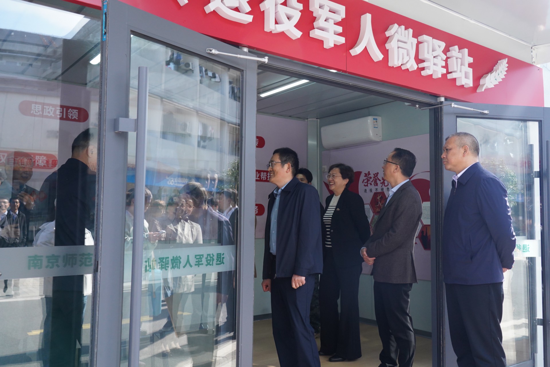 2025年11月11日,江苏省高校退役军人服务站点建设工作推进会在丹阳市召开,江苏省退役军人事务厅党组成员、副厅长王娟,省退役军人服务中心主任南方,省教育厅高校学生处正处职干部朱少明等领导出席会议,各地市退役军人事务局分管负责同志、高校代表等六十多人参加会议。本次会议由江苏省退役军人事务厅、省教育厅联合主办,旨在深入贯彻落实习近平总书记关于退役军人工作的重要论述,推动高校退役军人服务站点规范化、体系化建设,全面提升退役士兵大学生的服务保障水平。作为本次推进会的现场观摩点之一,我校退役军人服务站以其创新的“五个一”工作体系,吸引与会领导和高校代表60多人参观调研。院长戴传超、党委书记周燕、党委副书记邵新一及学工处处长、人武部部长、退役军人服务站站长陈伟陪同参观调研。
