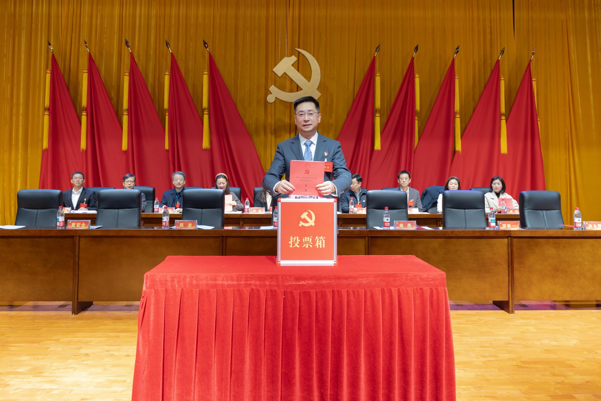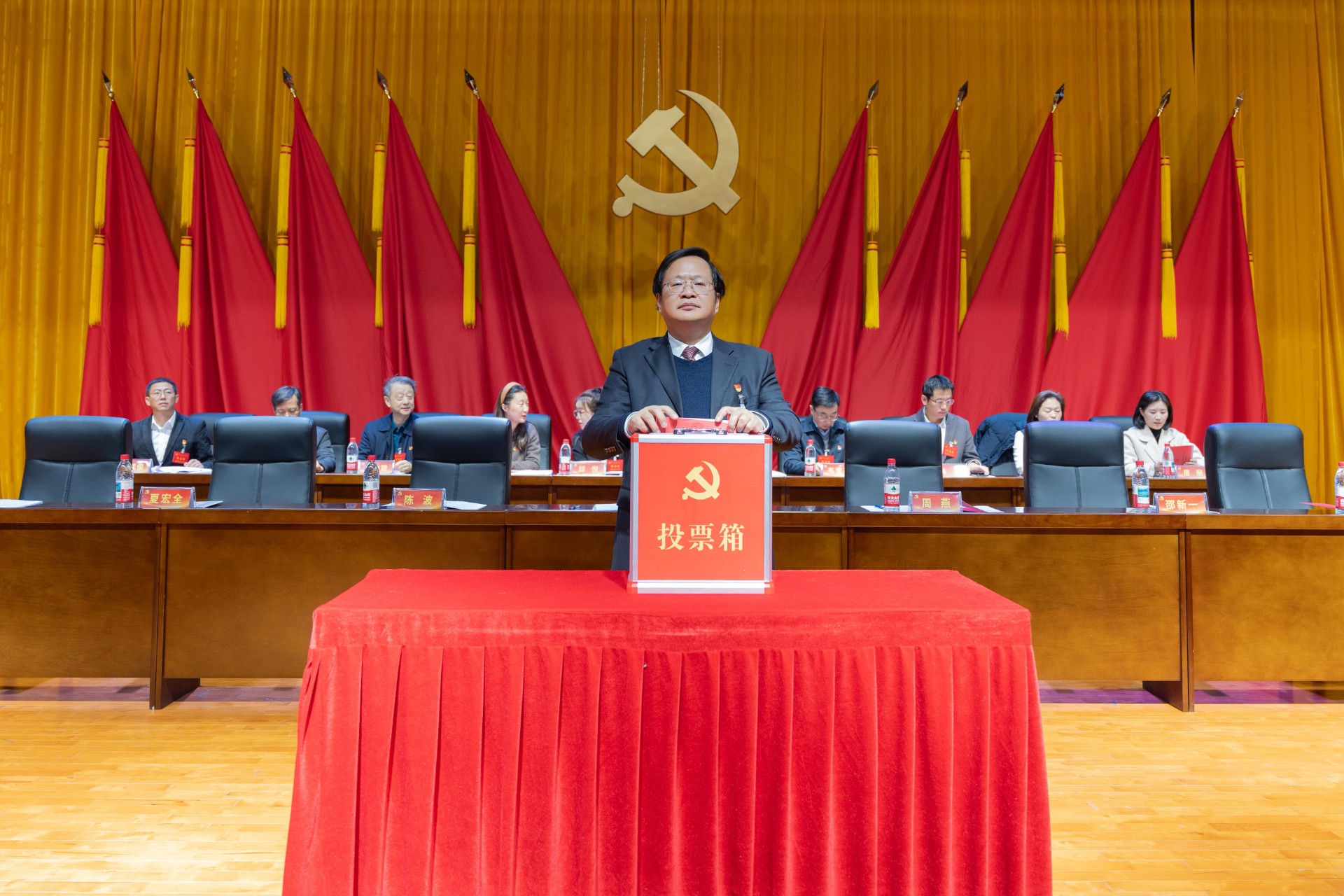 第二次全体会议以无记名投票方式进行了差额选举。大会严格按照选举程序,表决通过了选举办法、监票人名单,工作人员现场清点人数、检查票箱、分发选票。全体代表怀着高度的政治责任感和使命感,认真填写选票,有序投下神圣一票。投票结束后,监票人、计票人严格按照规定进行唱票和计票,全程公开透明、规范有序。大会选举环节组织严密、程序规范、风清气正。