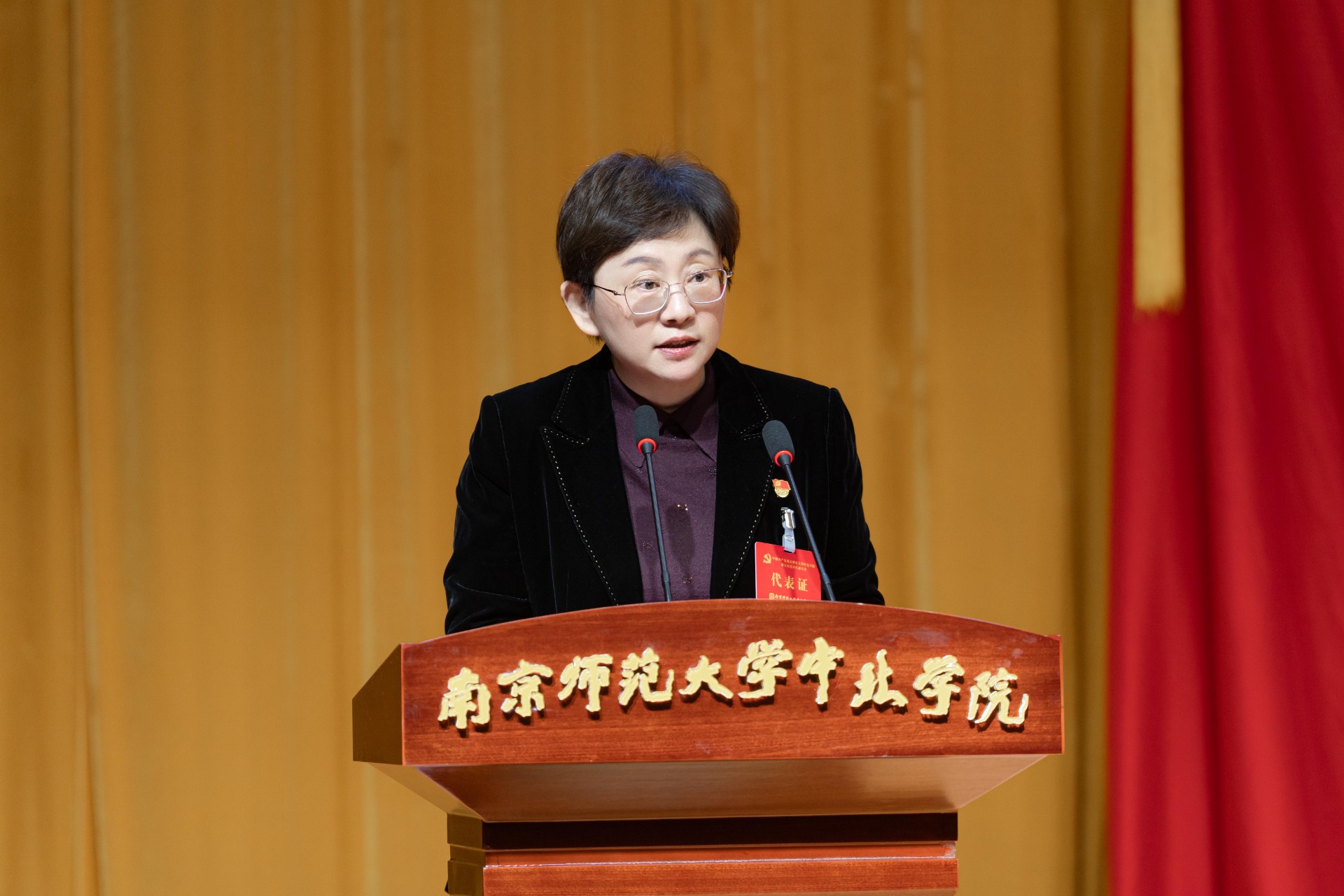 周燕同志代表大会主席团致闭幕词。周燕同志在致辞中回顾了过去五年学校极不平凡的奋斗历程。她强调,五年来,在上级党组织的坚强领导和亲切关怀下,学校党委团结带领全院师生员工,于时代浪潮中踏歌前行,以奋斗之笔书写了辉煌篇章。党建工作“根魂”越铸越牢,内涵发展“筋骨”越练越壮,师生福祉“温度”越来越暖。这些成绩的取得,深刻印证了坚持党的领导、规范办学、内涵发展、改革创新、师生为本的宝贵经验。