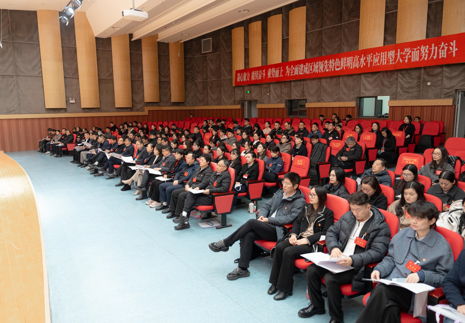 中国共产党ky.com第五次党员代表大会于2025年11月20日上午在正乐楼报告厅先后举行第二次、第三次全体会议。大会主席团成员及全体代表参加会议,学校领导戴传超、周燕、陈波、邵新一、夏宏全、徐永辉、李春艳在大会主席台前排就座。当日上午,在圆满完成各项预定议程后,大会胜利闭幕。这是一次高举旗帜、继往开来、团结民主、求实奋进的大会,为学校在新起点上加快建设区域领先、特色鲜明的高水平应用型大学指明了方向、凝聚了力量。
