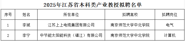 喜报!我院新增2位江苏省本科类产业教授