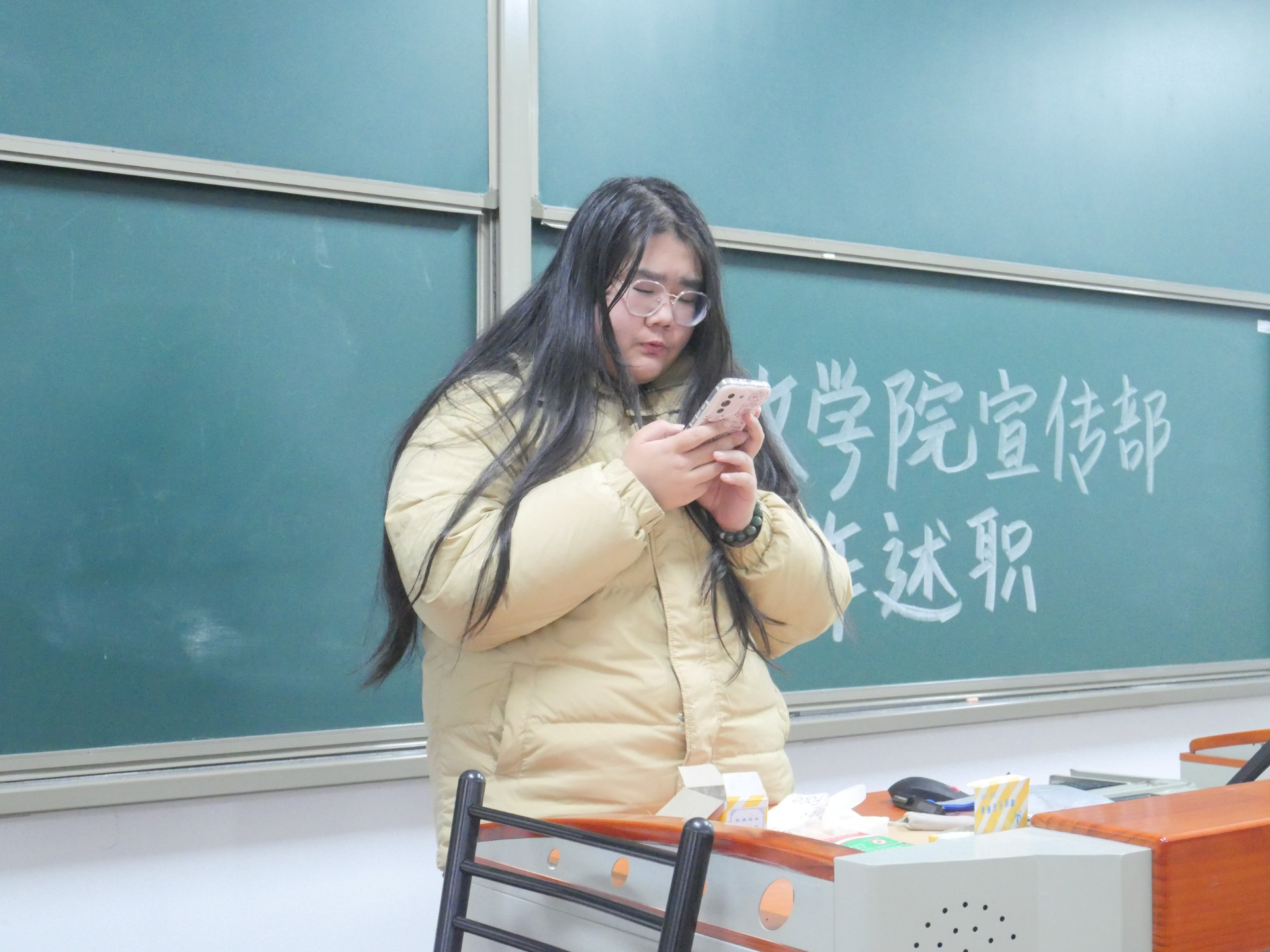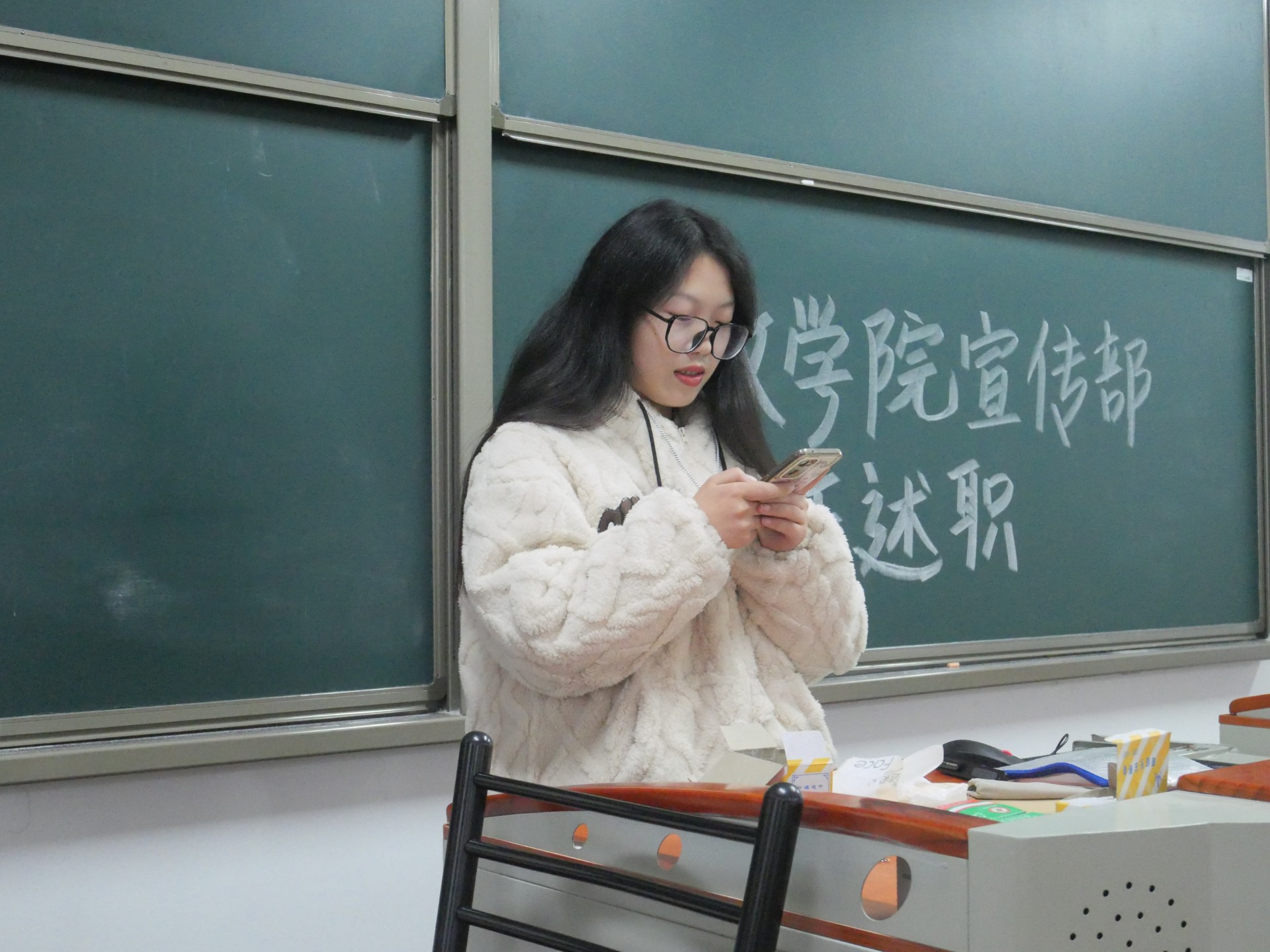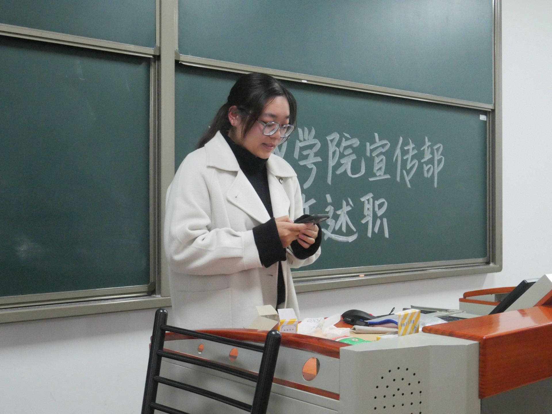 为了解上一学期宣传部各干事的工作,我院宣传部于3月5日16时在敏行楼217室开展了部门述职会议,会议由杨晓魁同学与戴璐同学主持,各宣传部成员与会。