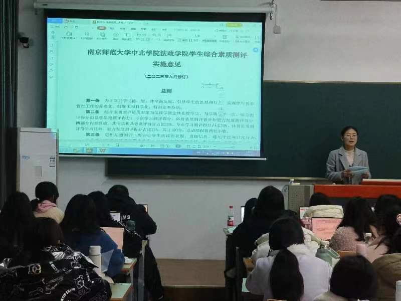 为进一步增强同学们对学生综合素质测评的了解,推动测评工作顺利开展,切实发挥测评对学生的积极导向作用,引导学生德智体美劳全面发展,3月6日—7日,法政学院各班通过线上线下方式召开学生综合素质测评动员大会暨讲解会。