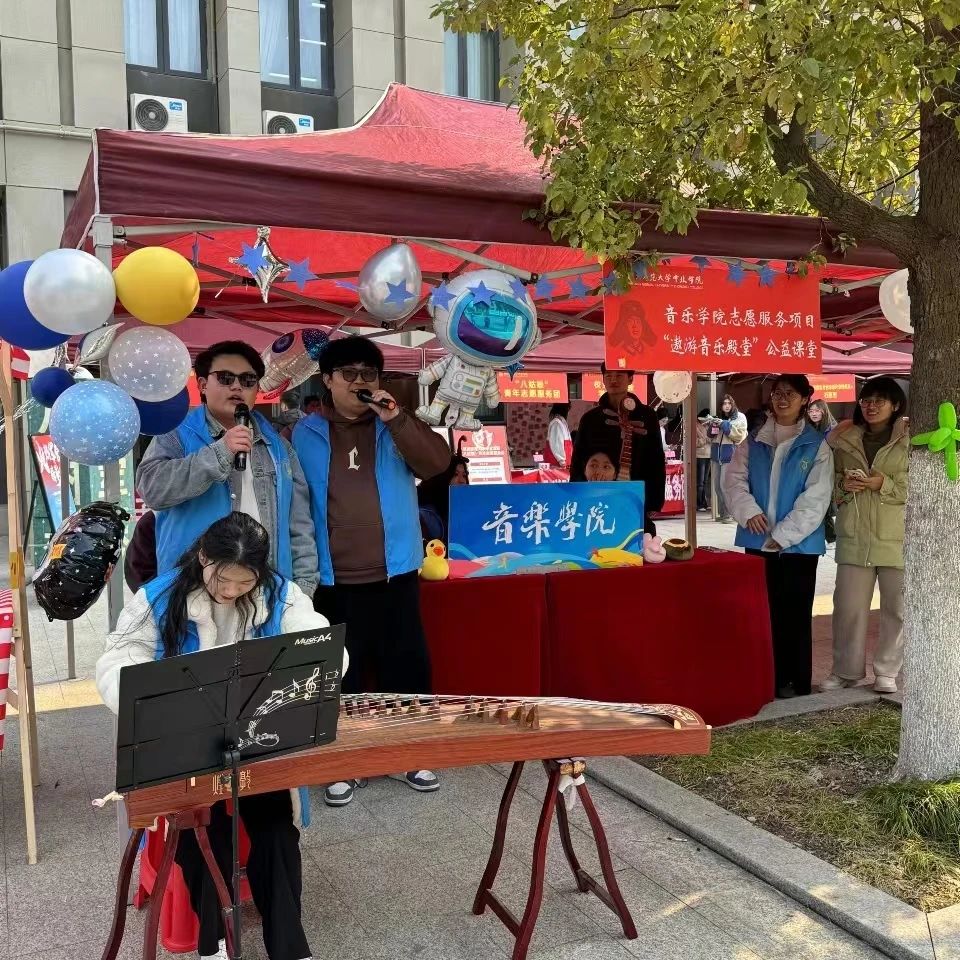 为了丰富同学们文化生活,展示志愿者勇于创新和蓬勃向上的精神风貌、提高青年大学生的主动意识,责任意识和服务意识,音乐学院于2024年3月7日在起凤楼广场参加了首届志愿者文化节展示活动。
