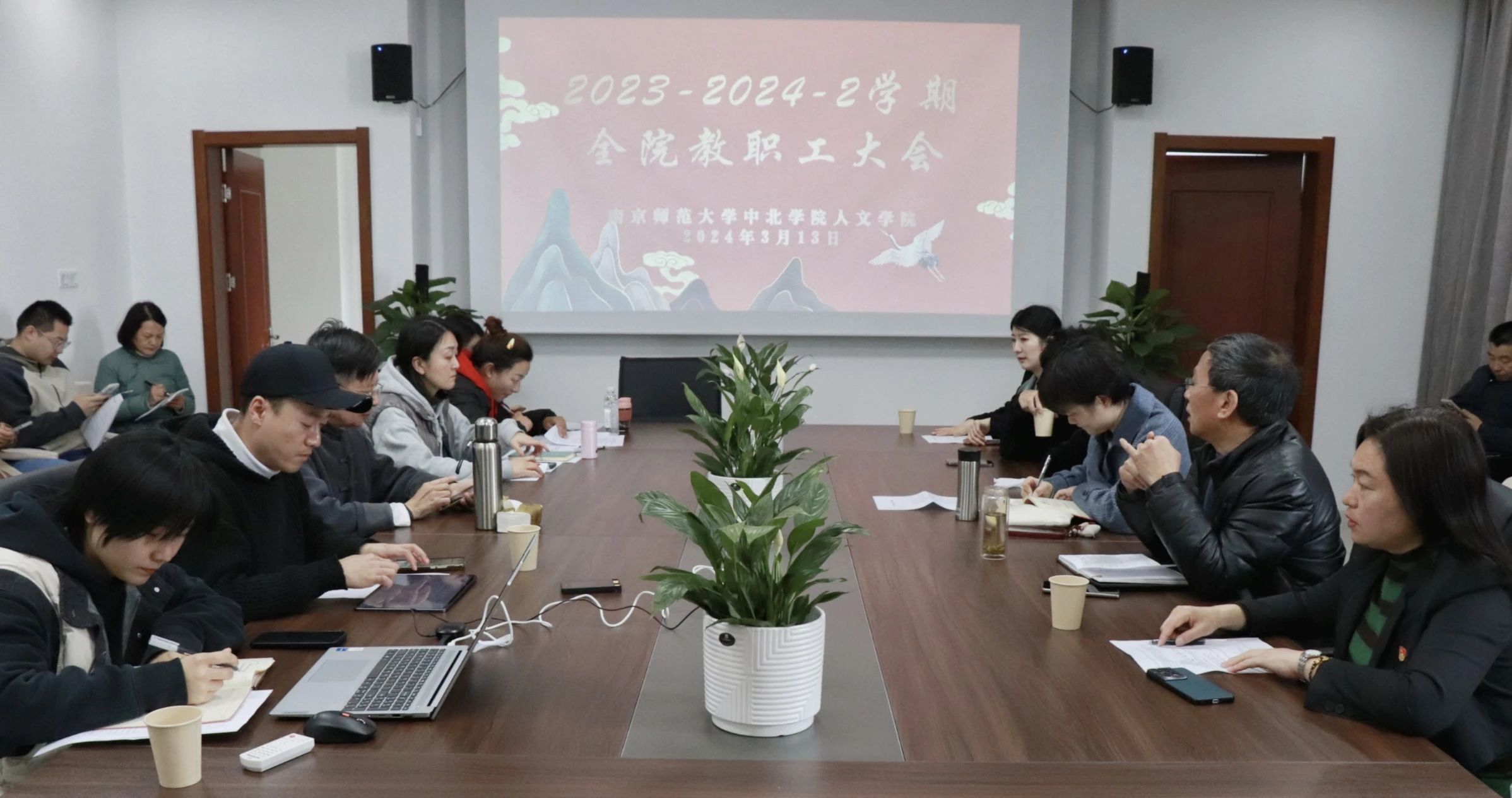 为深入贯彻落实学院新学期工作计划,提升全院教师的凝聚力,推动学院高质量发展,人文学院于3月13日下午一点半在崇文楼437召开全院教职工大会。