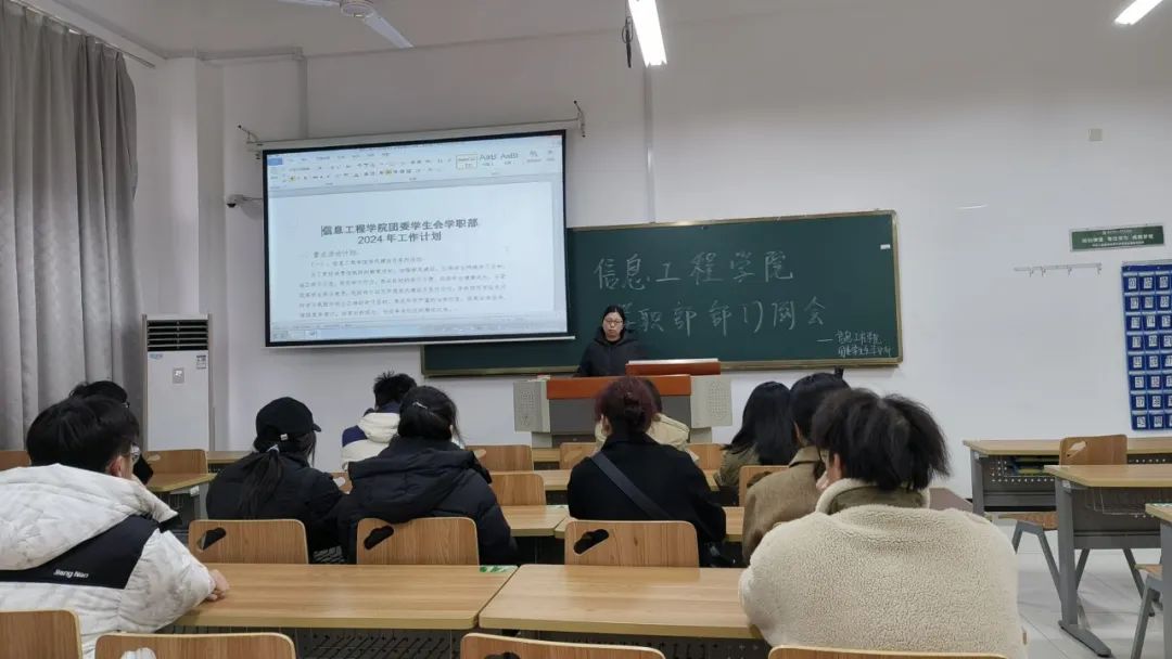 为提升学职部各成员的工作效率,回顾过去一学期的工作成果,总结经验教训,并对新学期的工作进行规划与部署,信息工程学院团委学生会学职部于3月15日15:50在敏学楼113召开部门例会。本次会议由学职部分管老师刘江莲和学职部负责人邱棕炜主持,学职部全体成员参加本次会议。