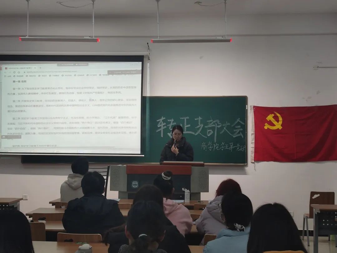 2024年3月18日下午四点,中北学院商学院学生第一、第二党支部分别在二教217、220教室召开党员支部大会,讨论门雅赛、郭文斌等15名预备党员的转正问题,并进行专题学习。本次会议由李雪婷、王星晨主持,党支部书记芮锦绣、郝思捷和全体党员参加本次会议。在庄严的国际歌中,本次会议正式开始。