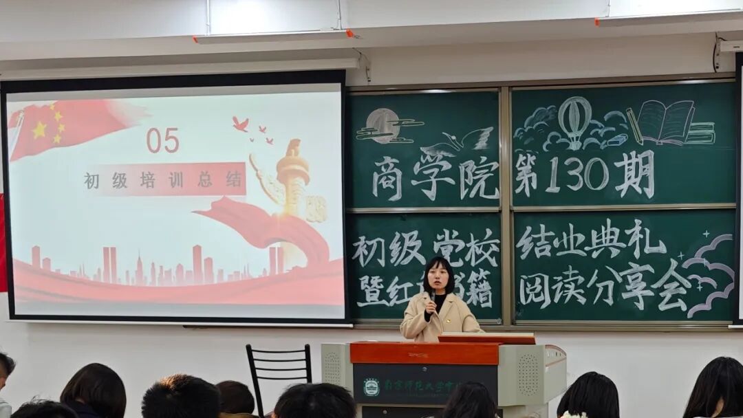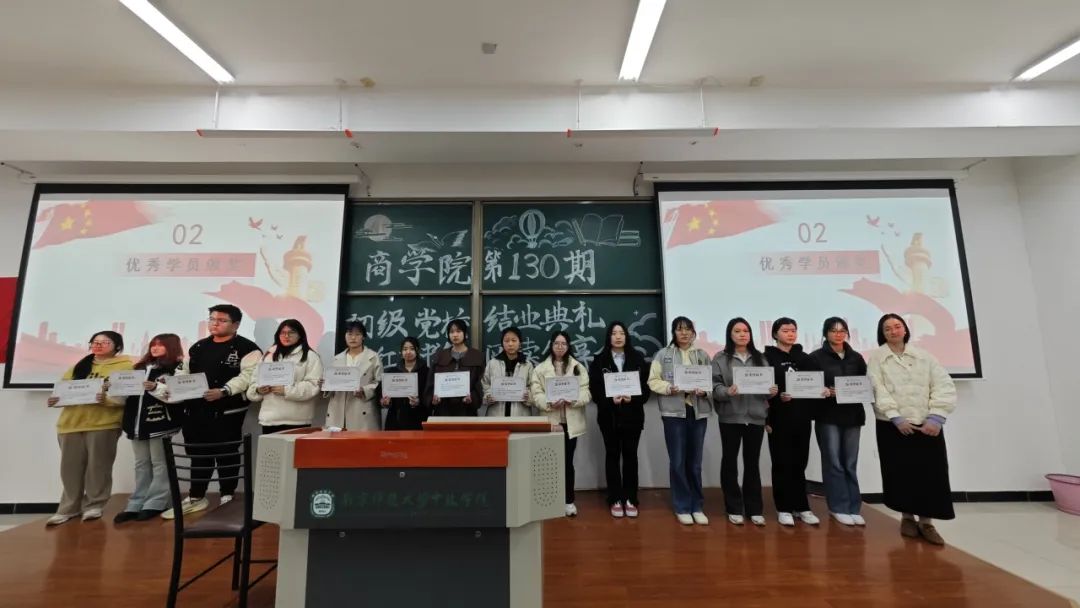 在本次初级党校培训班中,共有208名学生报名,189名同学顺利通过考核,通过线下学习、理论考试、实践活动等环节,共评选出张雨彤、徐佳钰等15名优秀学员,商学院团委书记顾丽超老师为他们颁发奖状。优秀学员代表马斓芮分享她的培训感受,通过培训她对党有了更加全面清晰的认识,学习能力也得到了很大的提升,她明白自己身上肩负的责任和使命,以“青春因奋斗而光彩,生命因奉献而伟大”激励自己书写一个无悔的青春。
