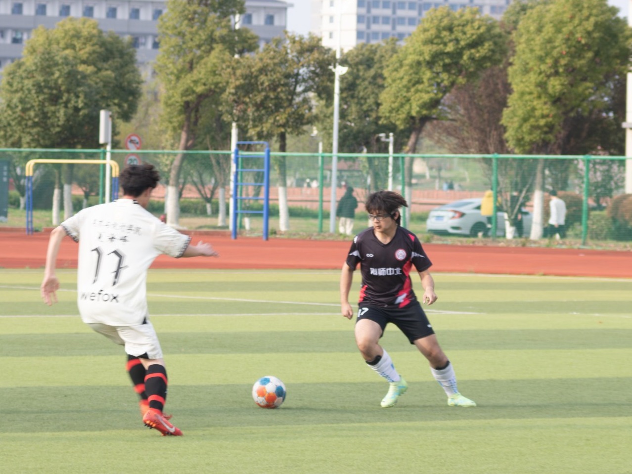 绿茵点亮梦想,激情舞动青春。3月26日16时30分,法政学院与美术学院两支足球队在南苑操场展开激烈角逐。