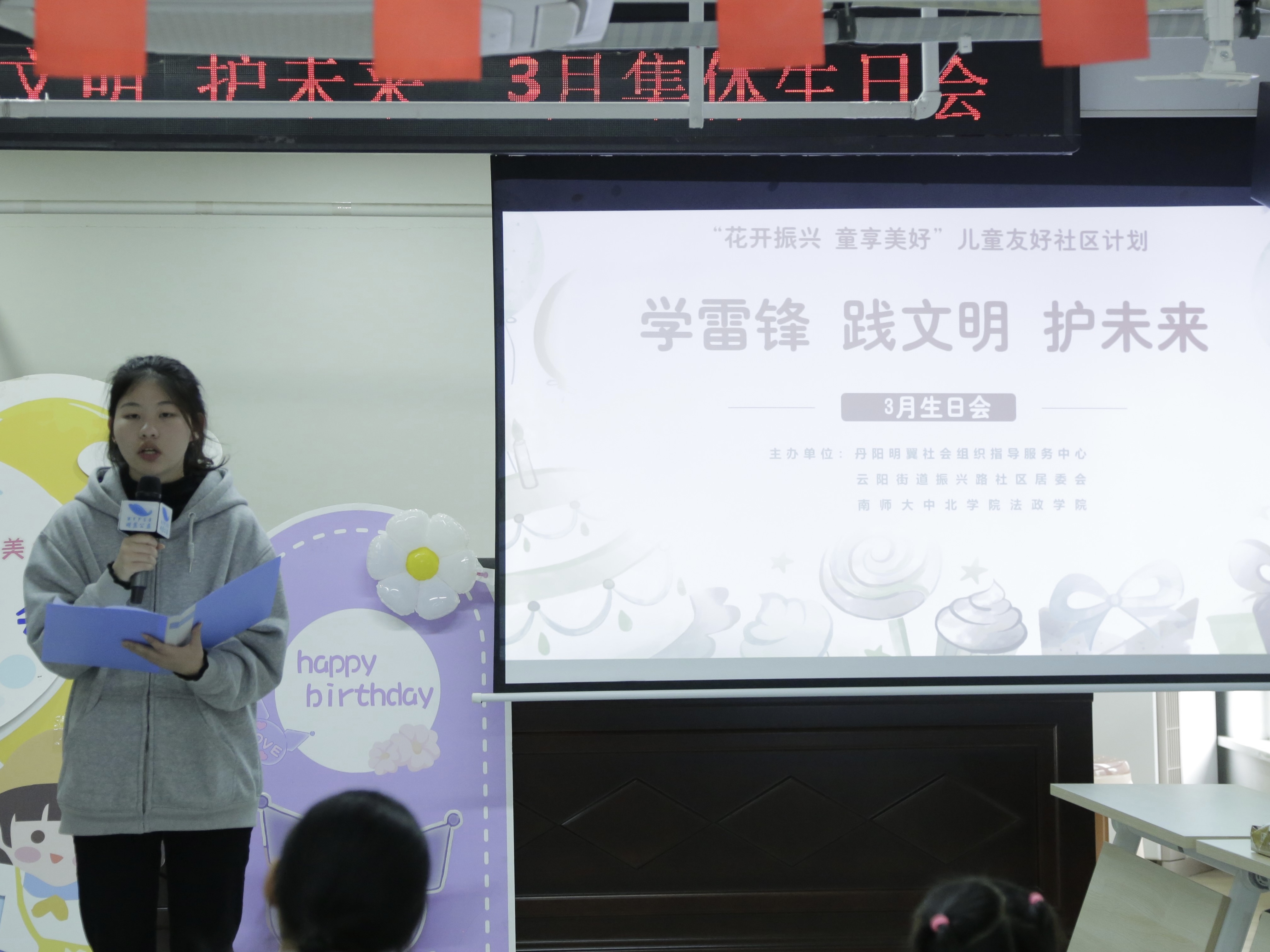 三月春风暖人心,雷锋精神永流传,为让我院学子发挥专业优势,进一步践行雷锋精神,传递雷锋精神的火种,ky.com法律援助协会、法政学院学生会实践部与云上阳光社区公益基金会紧扣“青春有我,社区报道”的主题于3月23日在丹阳市振兴路居委会开展“学雷锋,践文明,护未来”的社区公益活动,此次活动由赵祎然同学主持。