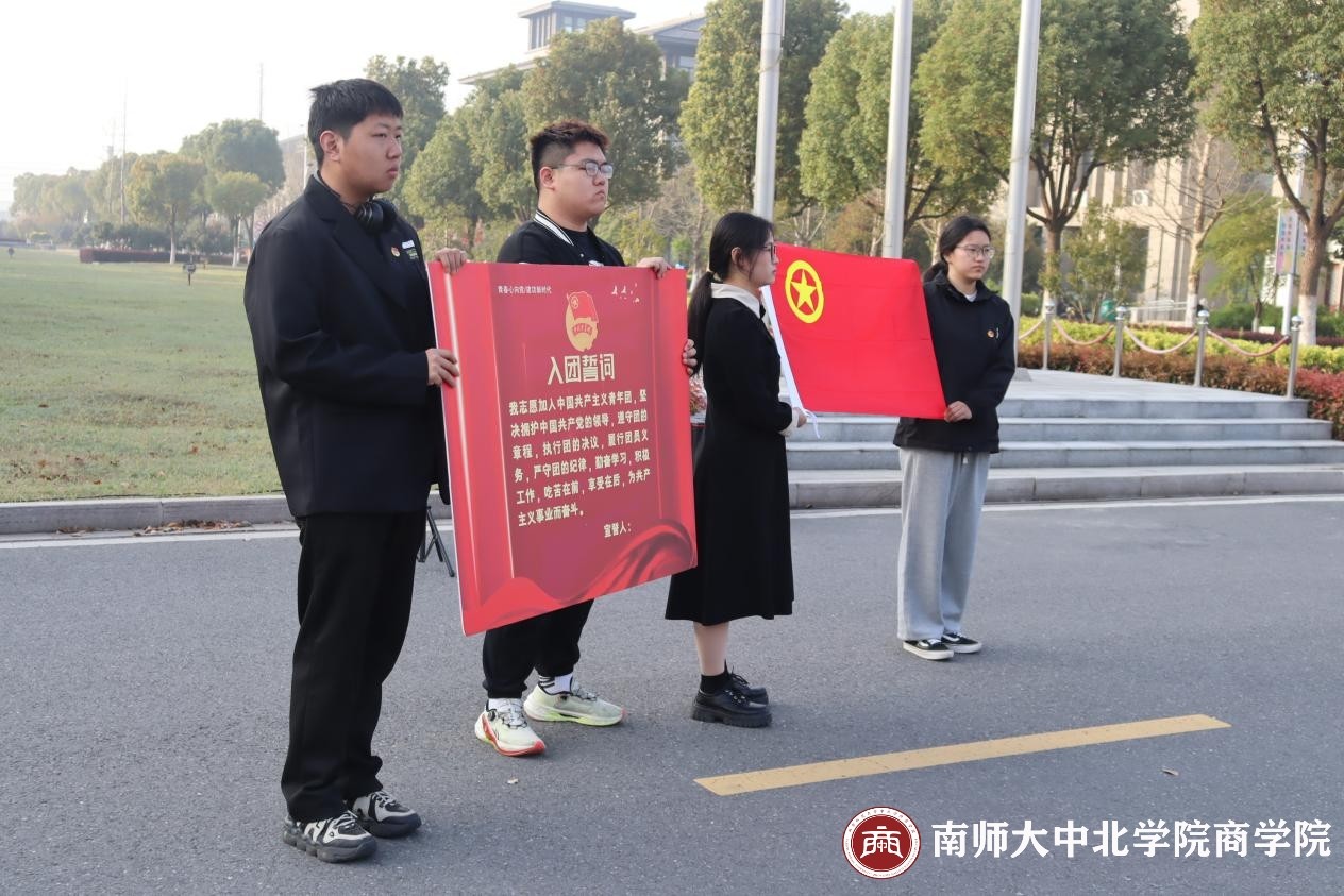 全体新发展团员举起右臂,紧握右拳,齐声宣誓。他们铿锵有力的誓言回荡在空中,彰显着新时代青年的责任与担当,充分展现了他们为实现共同理想而奋斗的坚定信念。