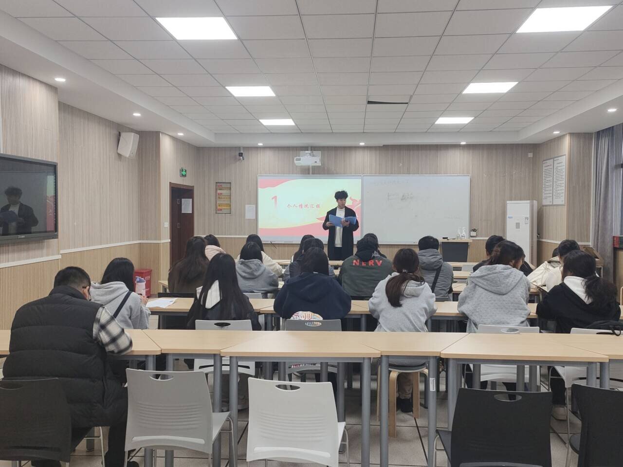 推荐优秀团员作为党的发展对象,是保持党、团组织紧密联系的重要制度设计,是保证党的事业薪火相传、后继有人的重大战略部署,是党赋予共青团组织的一项光荣任务。为增强新生班级团支部对推优团会的理解,选拔优秀团员,向党组织注入新鲜血液,2024年3月25日16:00,外国语学院2203团支部于崇文楼449会议室召开团员推优观摩会,参加会议的有外国语学院辅导员王文山、党员俞悦溪、822203团支部全体团员以及外国语学院23级团支书和21级日语转本班团支书。本次会议由822203班团支书陈智威主持。