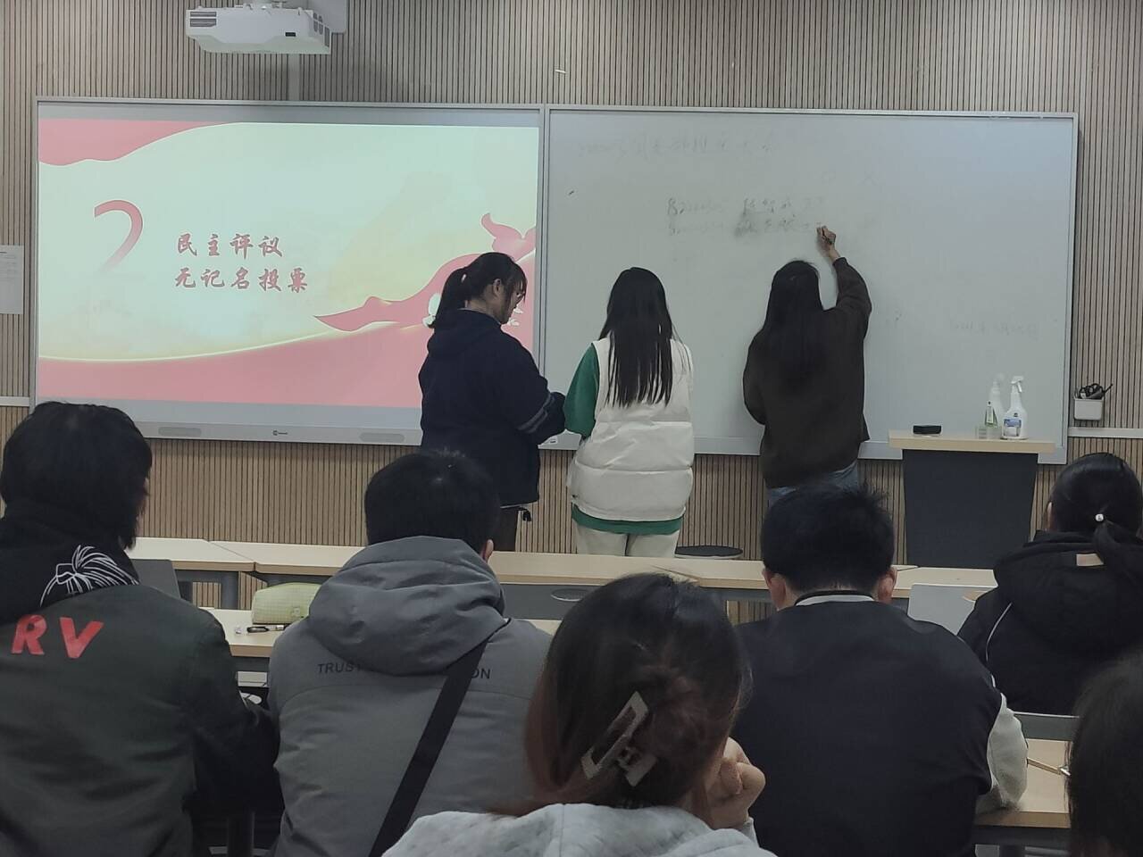 会议第二项议程,无记名投票民主评议。本着公平、公正、公开原则,同学们实事求是地对两名候选人进行民主评议。由唱票人、监票人和计票人统计结果并进行票数公示。