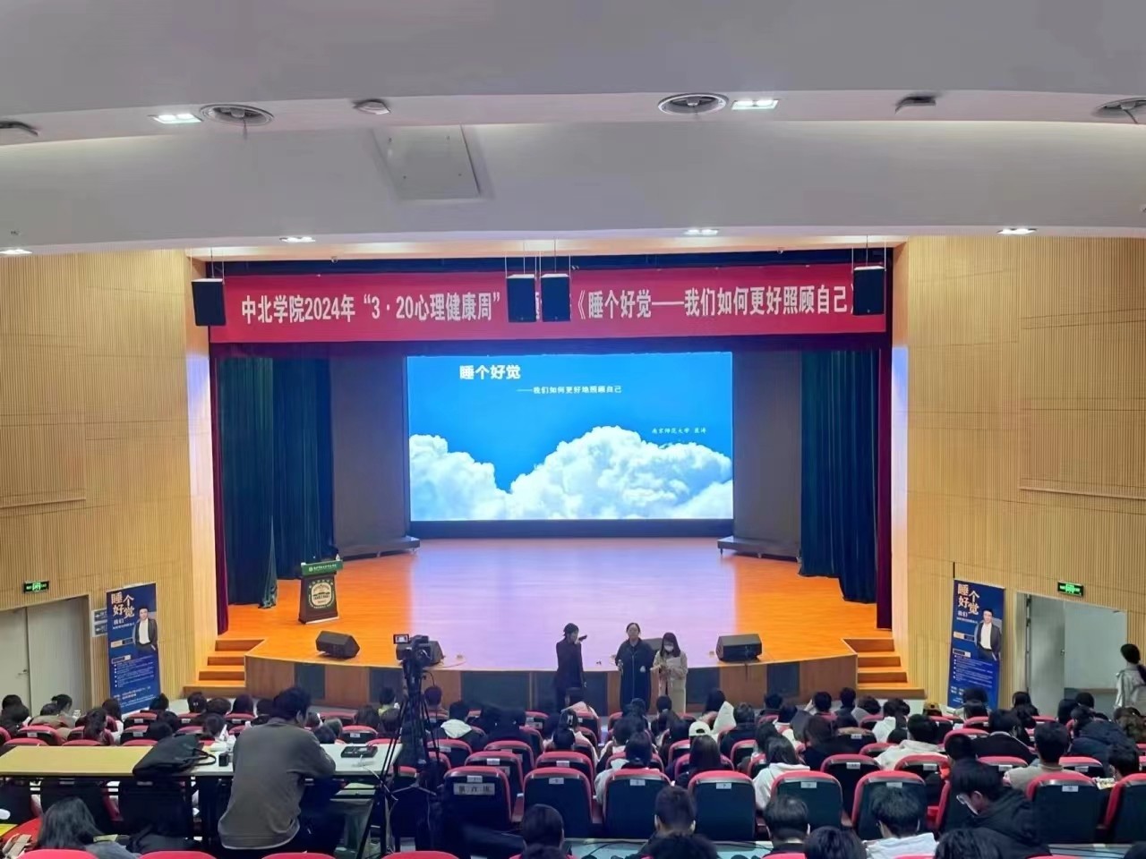 随着春季学期的展开,我校学子正在建立新学期的学习与生活节奏,而睡眠问题是大学生各类身心问题的重中之重。关注睡眠就是关注健康,为了提升我校学生身心健康水平,恰逢 3·20 心理健康主题周,我院组织在校学生通过线上、线下两种方式,收看了于2024年3月28日下午15:10开展的,由裴涛教授主讲的《睡个好觉——我们如何更好照顾自己》心理健康主题讲座。
