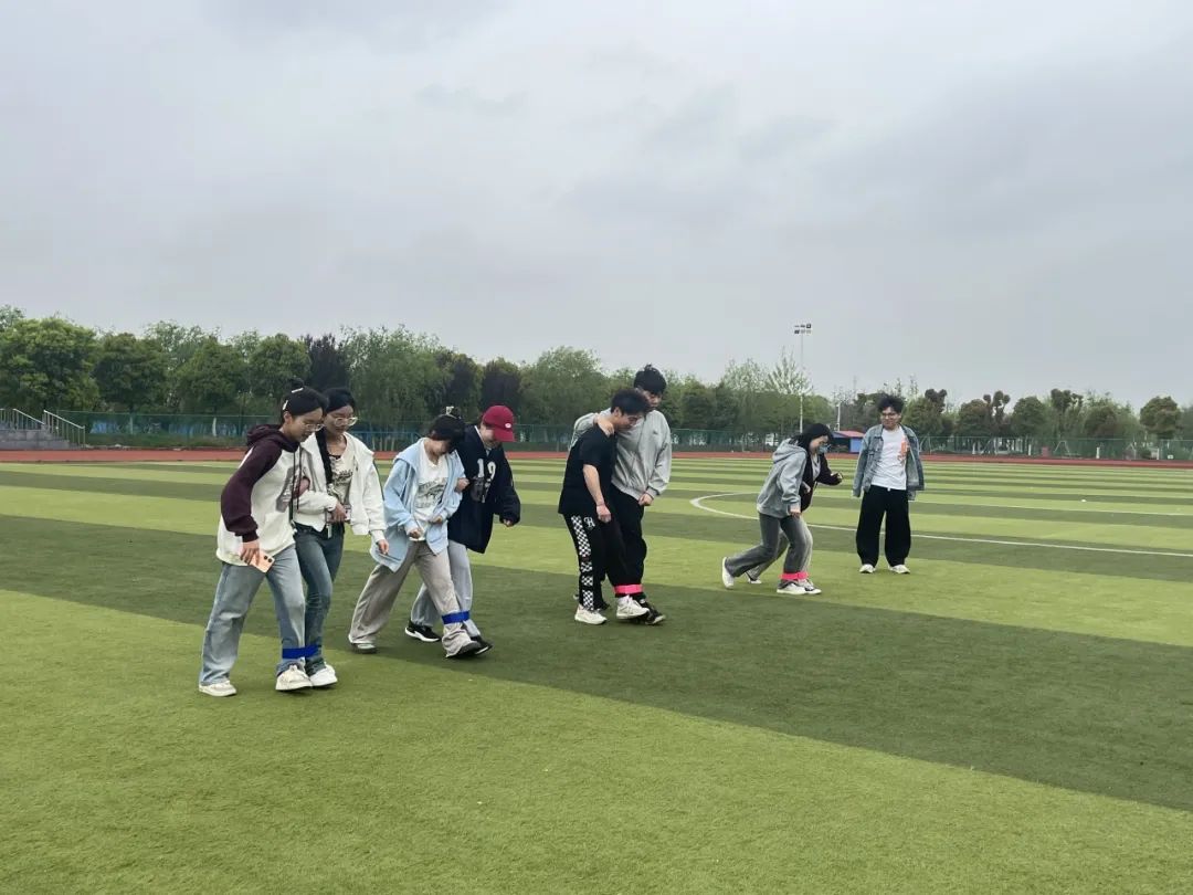 活动第一项为“情同手足”。同学们各自分组,在奔跑中与队友们齐心协力,共同奔向终点,获得游戏胜利。队员们有的默契十足,有的幽默万分,但都竭力为自己队伍夺得第一。