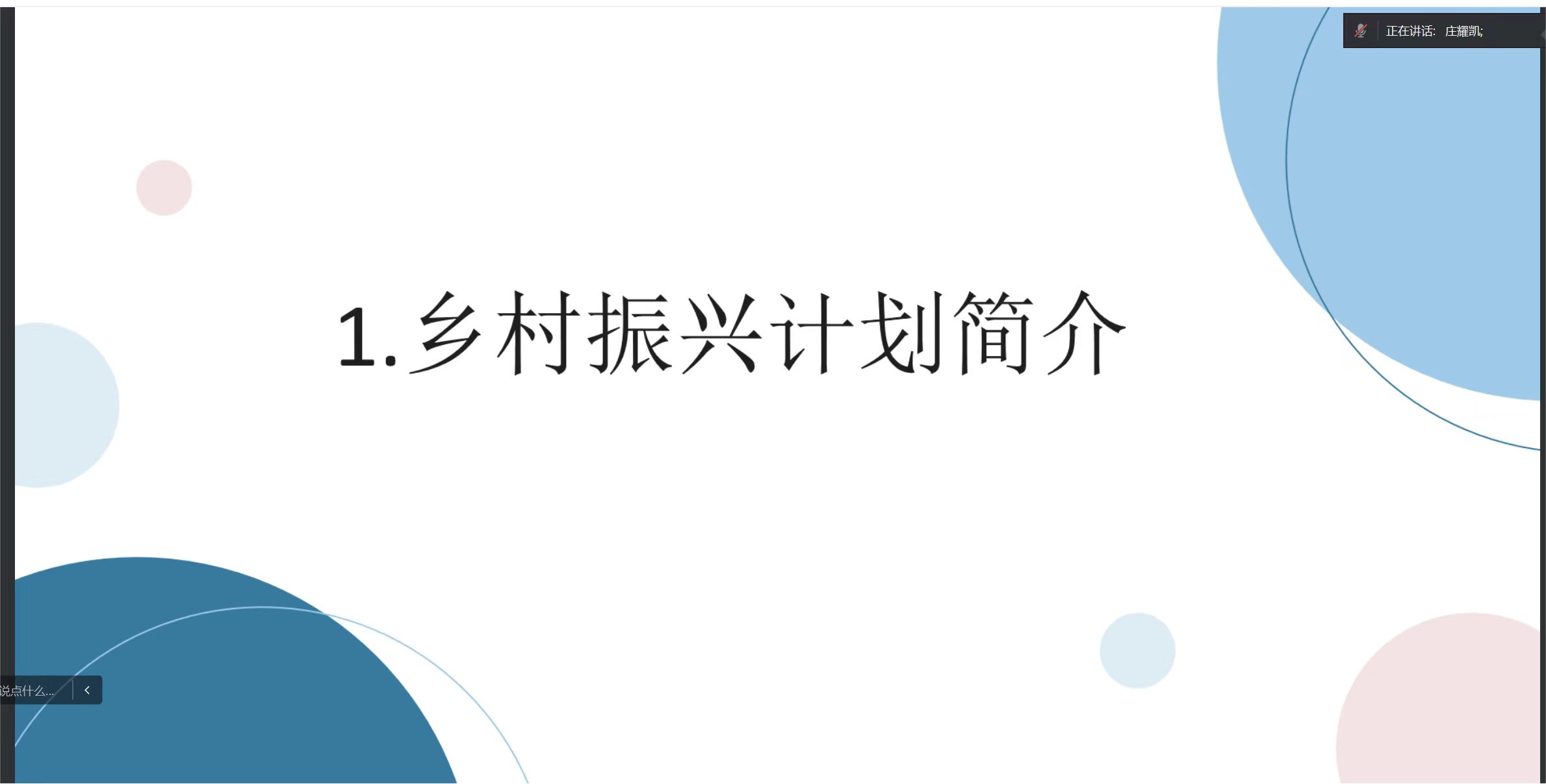 会议邀请到19级庄耀凯学长为同学们介绍乡村振兴计划具体内容。庄耀凯同学来自江苏省宜兴市,共青团员,19级数据科学与大数据技术专业。曾担任信息工程学院文体部主要负责人,1908班班长。现参加江苏省大学生志愿服务乡村振兴计划,服务于连云港市灌云县。