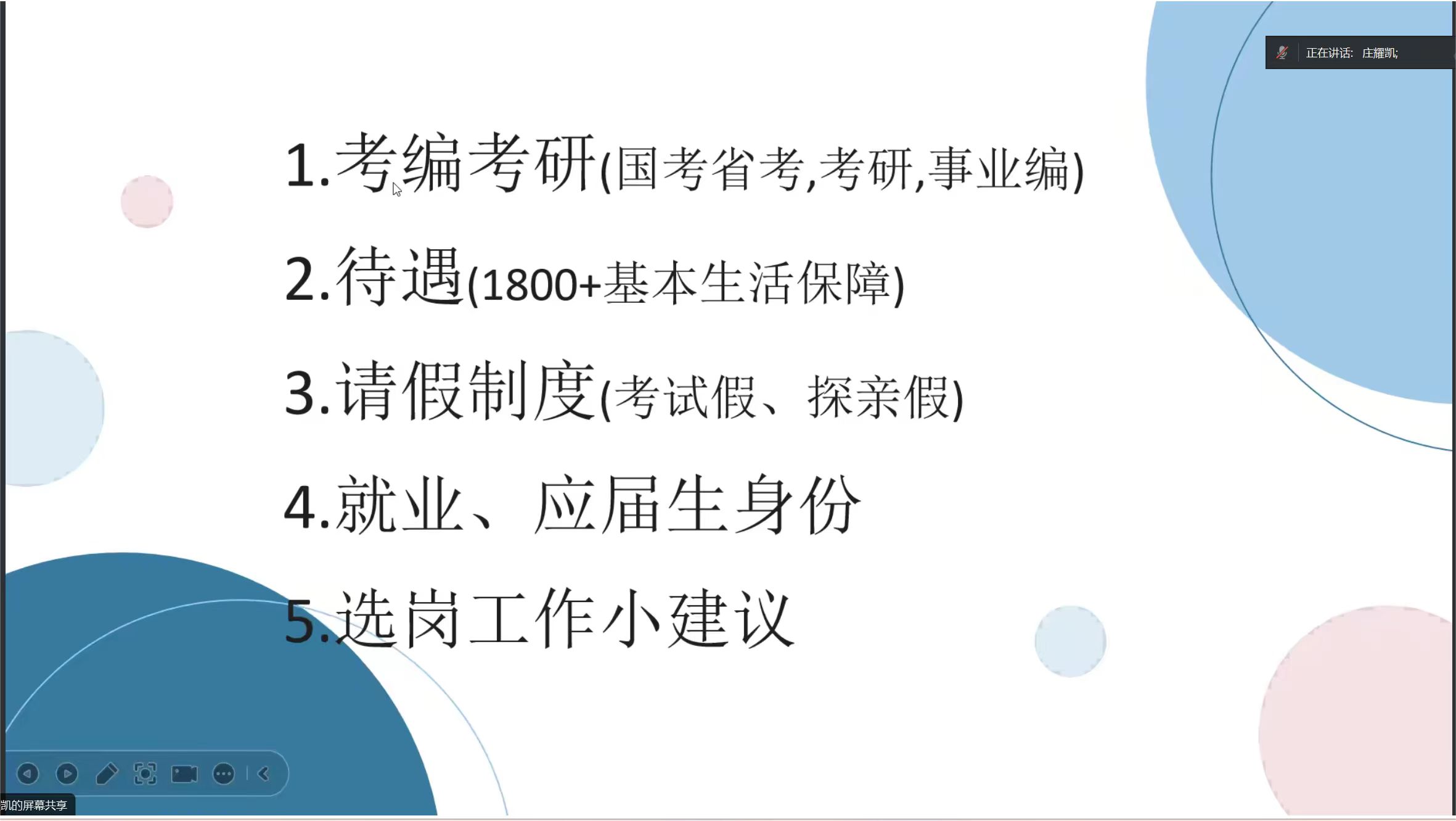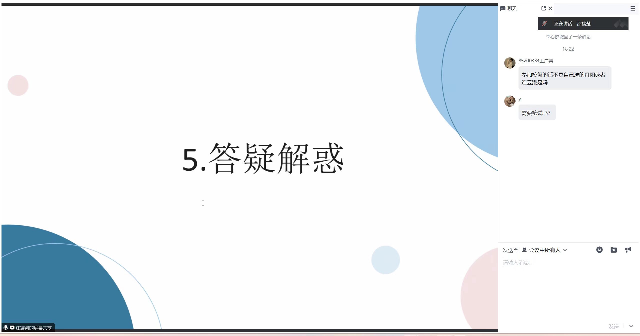 随后,庄耀凯针对同学们关注的若干问题提供了解读。他阐述了参与该项目对于国考、省考、考研以及事业编等考试的助力,以及项目提供的待遇。他还介绍了请假制度以及就业、应届毕业生身份等事项。针对面试准备,庄耀凯也为同学们提供了许多建议。面试过程中强调个人优势与岗位的匹配度,便于与当地民众交流。个人优势各不相同,需提前准备好,以便大方展示。在答疑解惑环节,邵褚楚老师悉心汇集了同学们的疑问,以统一提问的方式,为同学们排忧解难,庄耀凯对同学们的提问进行了详尽解答。