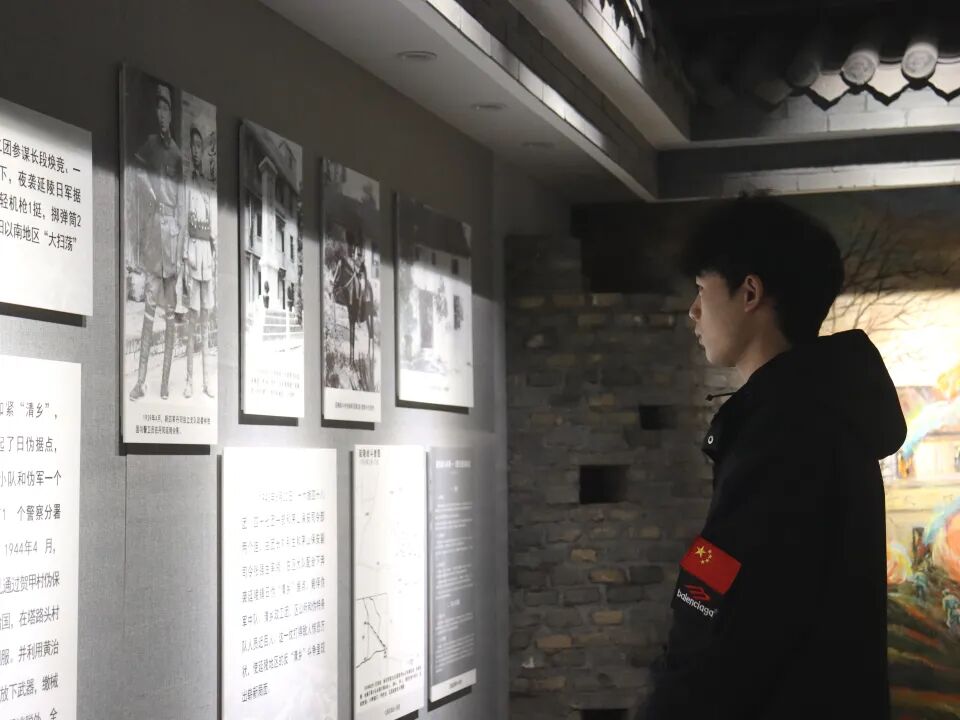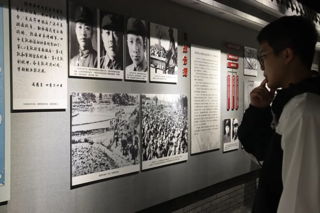 展示墙上的老照片和文字资料,生动地展现了贺甲战斗的场景和先烈们的英勇事迹。同学们认真聆听着贺东根同志的讲解,时而驻足观看,时而沉思不语。