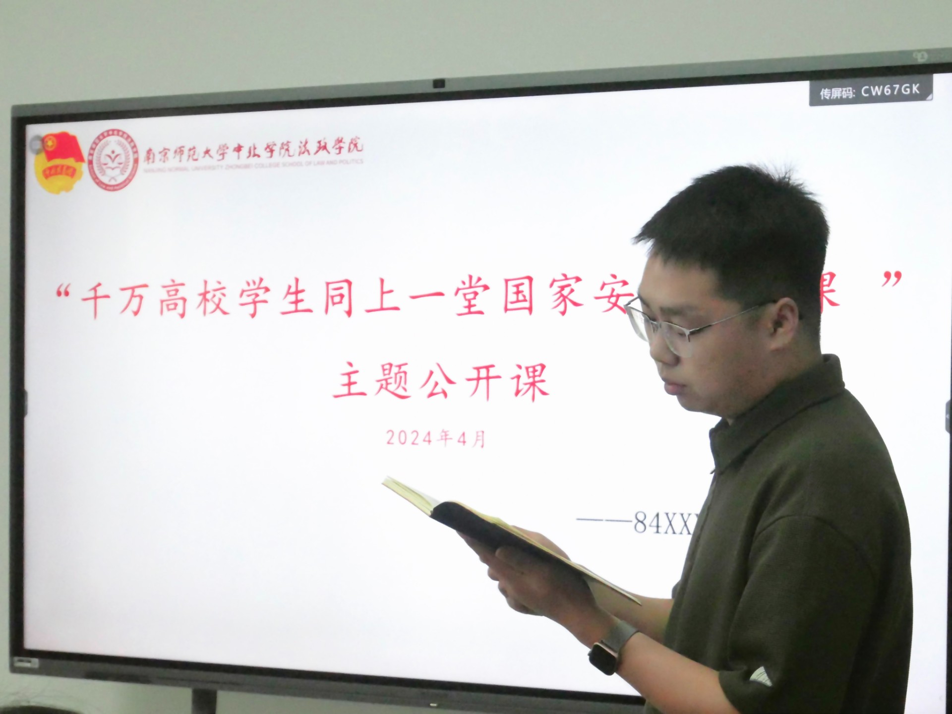 王贵同学号召各位团支书积极在班内组织学习国家安全观的具体内涵与要素,并带领同学们完成国家安全知识答题。他提出各团支书要激励同学们深入学习国家安全观,勇于为维护国家主权、安全、发展利益挺膺担当。