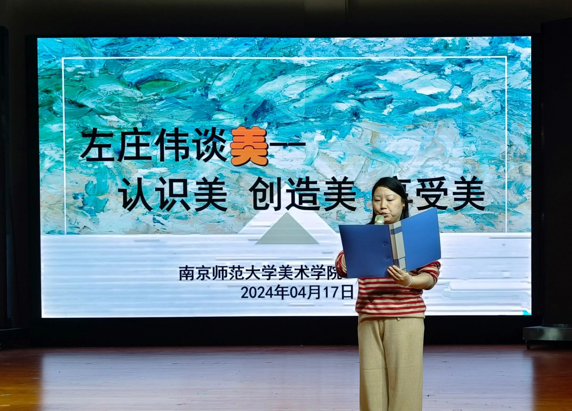 4月17日下午,我院有幸邀请到南京师范大学美术学院左庄伟教授为全校师生带来了一场精彩绝伦的讲座,主题为“认识美、创造美、享受美”,美术与设计学院的师生以及其他各学院的同学们到场参加了本次讲座。讲座由美术与设计学院副院长陆心远主持。