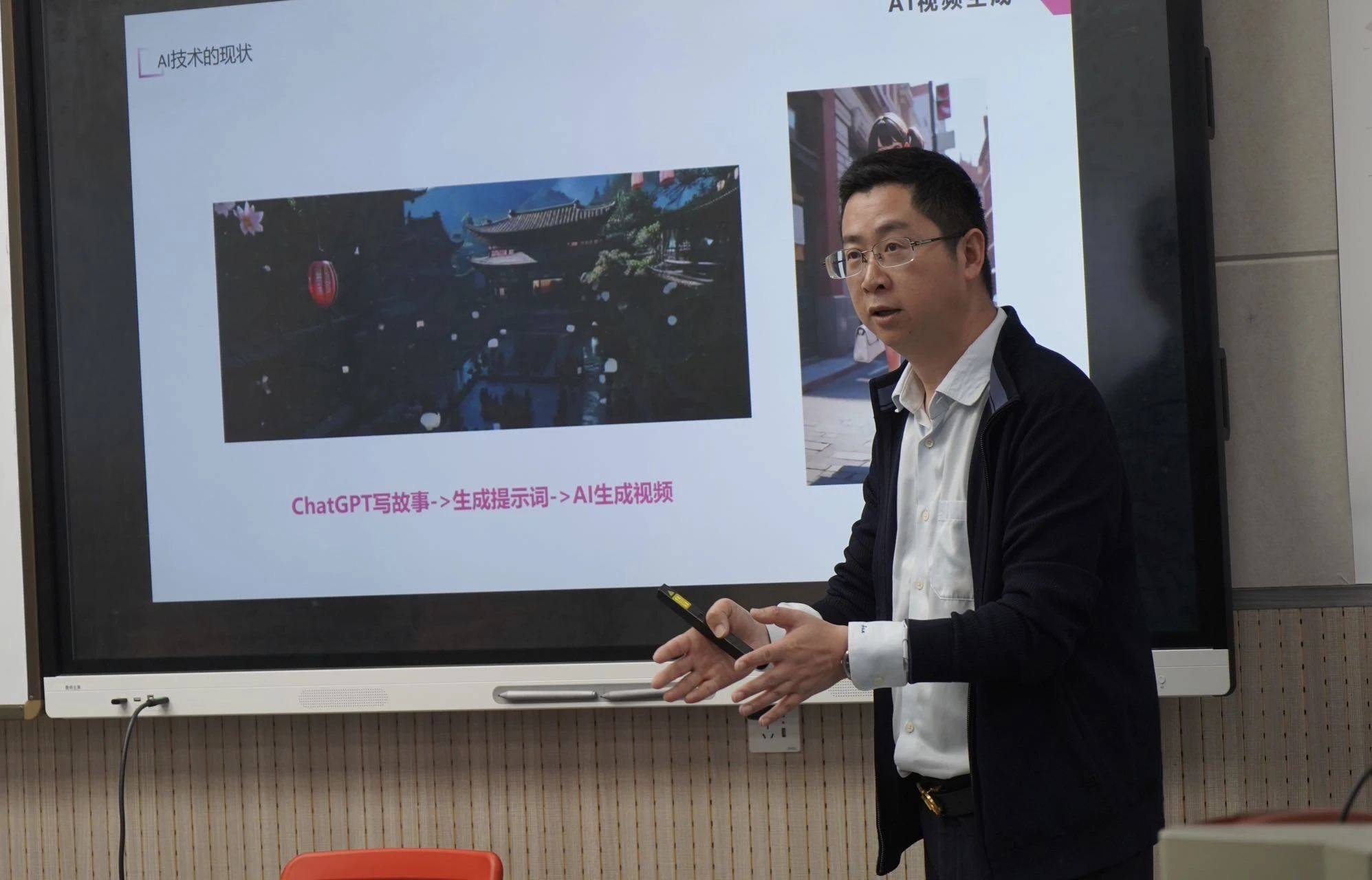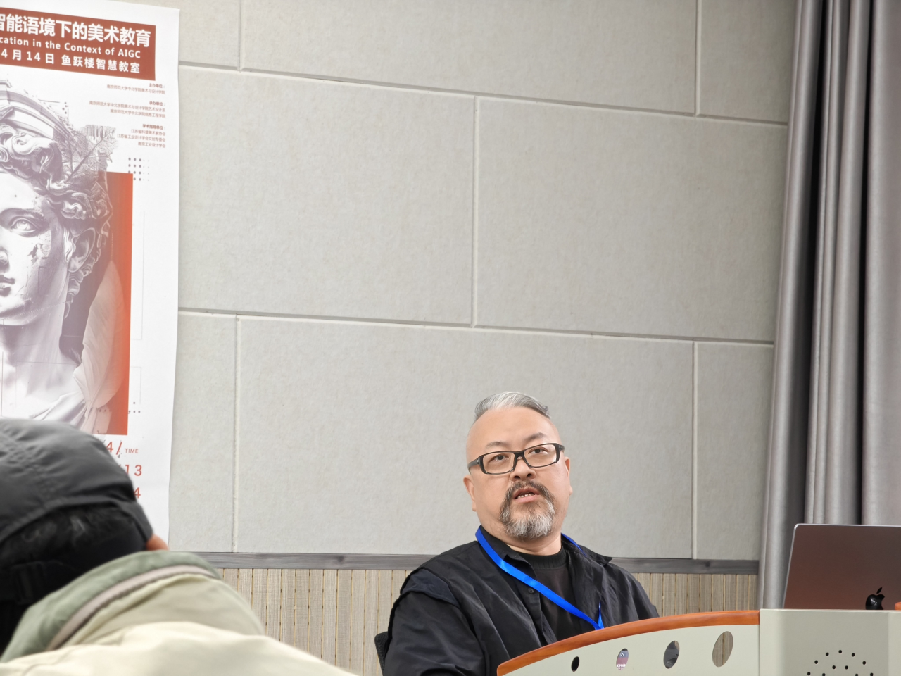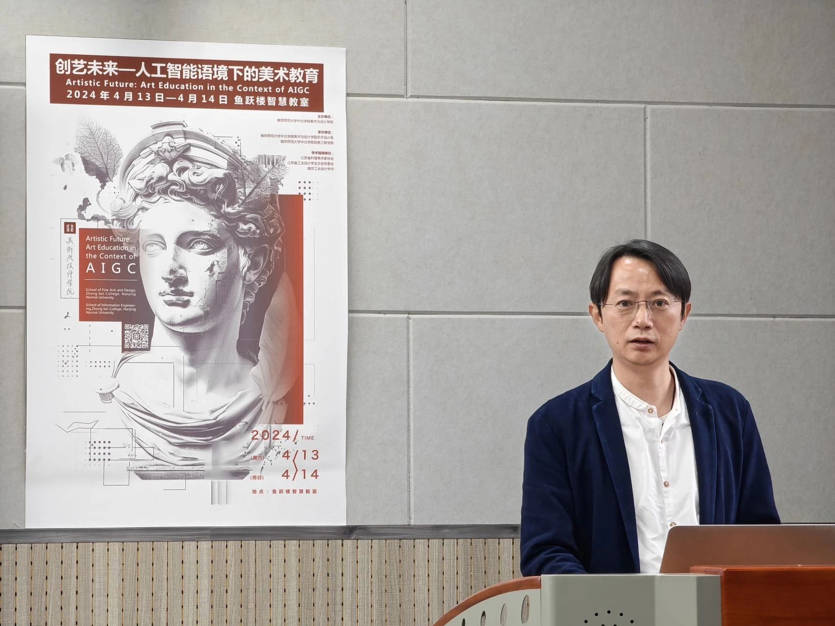 研讨会上,南京师范大学美术学院摄影与媒体艺术系主任马峻教授、跨媒体艺术系主任冉达教授、跨媒体艺术系副主任李冰洁教授,南京师范大学计算机与电子信息学院刘日晨教授,ky.com美术与设计学院动画专业主任赵松老师,江苏投石智慧科技有限公司董事长孙峰峰,江苏瀚港文化科技发展有限公司董事长祝峻,中兴通讯股份有限公司工业设计总监黄春,围绕着AICG技术在绘画、摄影、工业设计、文创设计、产品设计、动画、音乐等领域的应用案例进行了讲座分享,探讨人工智能语境下高校如何开展美术教学。