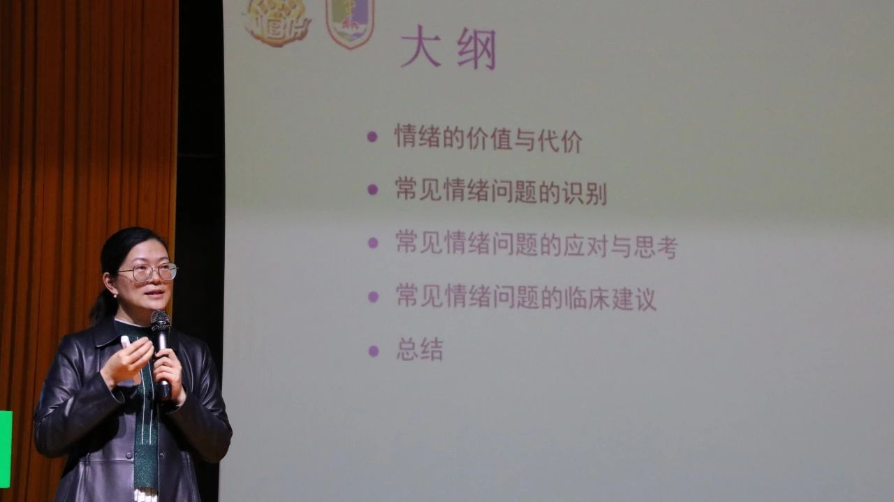 而后,柳娜博士介绍了常见的心理问题,阐述了关于抑郁症的症状特点,抑郁症的病因,说明了抑郁与焦虑的区别。又介绍了常见的焦虑障碍,同时还介绍了强迫障碍。