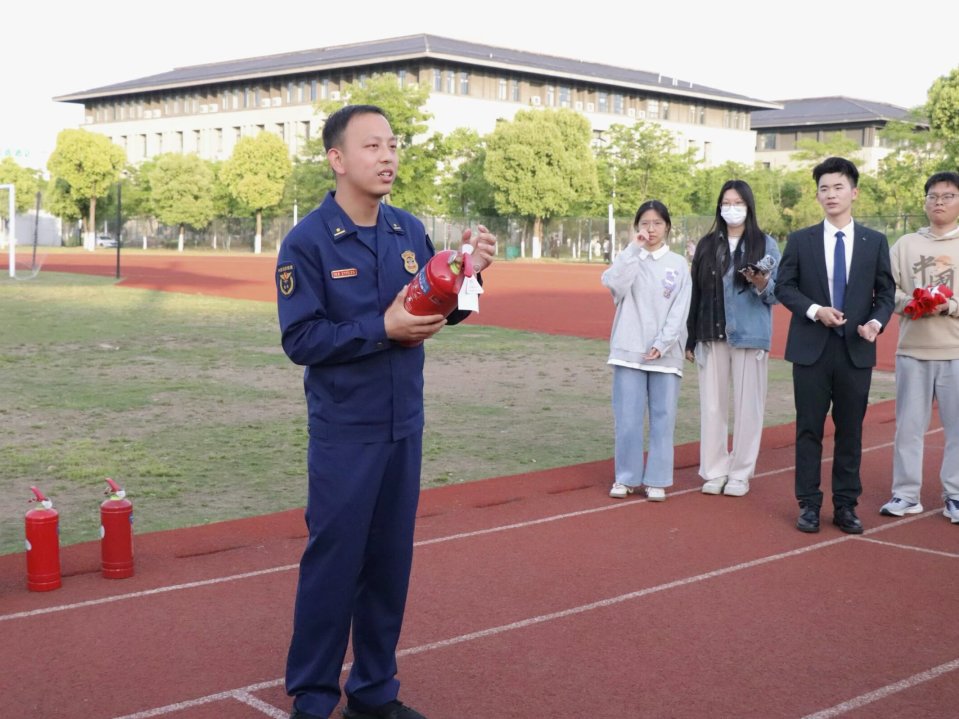 最后,同学们跟随卞应瑞站长前往北苑操场进行消防技能实践训练。在卞站长的热情鼓励与悉心教导下,同学们积极上前,大胆尝试,很快掌握了灭火器的正确使用方法。