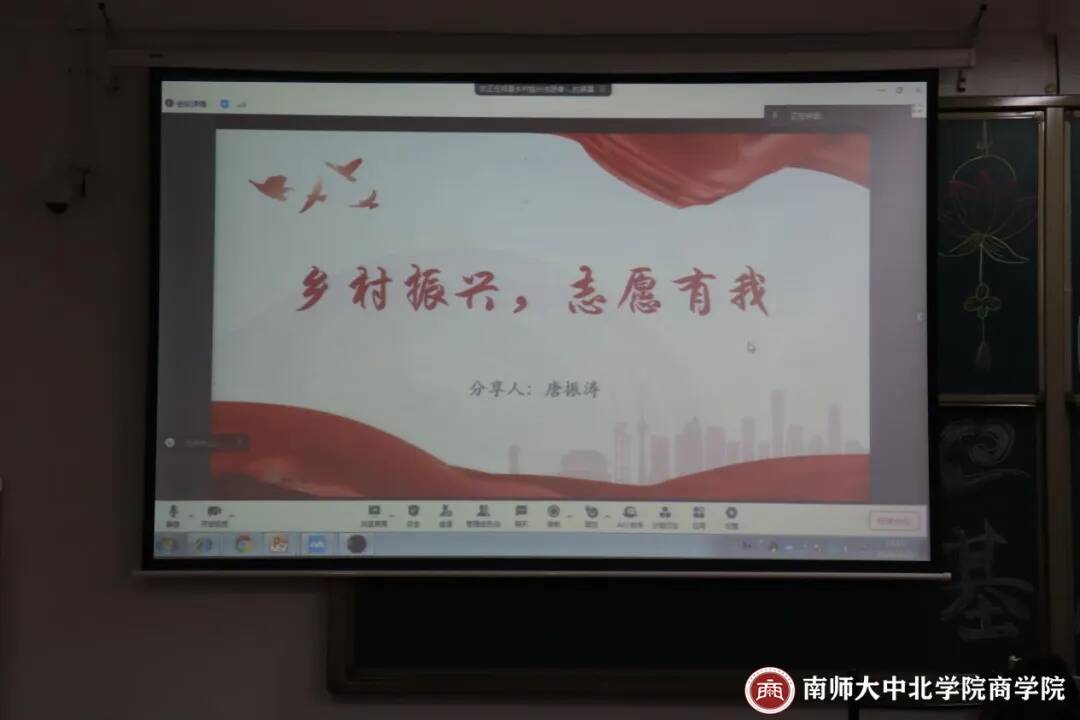 唐振涛同学则与大家分享了“志愿服务乡村振兴计划”。他从参加该计划的优势、如何做出选择、学习了解政策、招募和报名平台的介绍以及一些注意事项(如地区问题)等方面进行了宣讲,并在最后通过实例分析了“乡村振兴计划”对毕业生的影响。