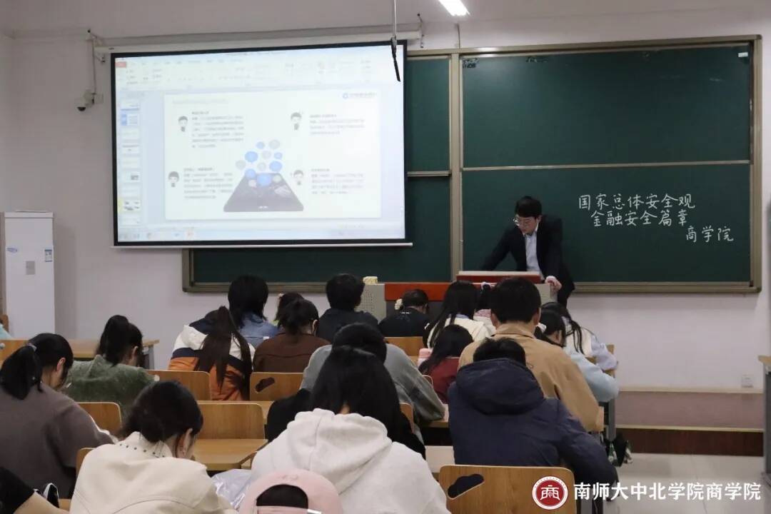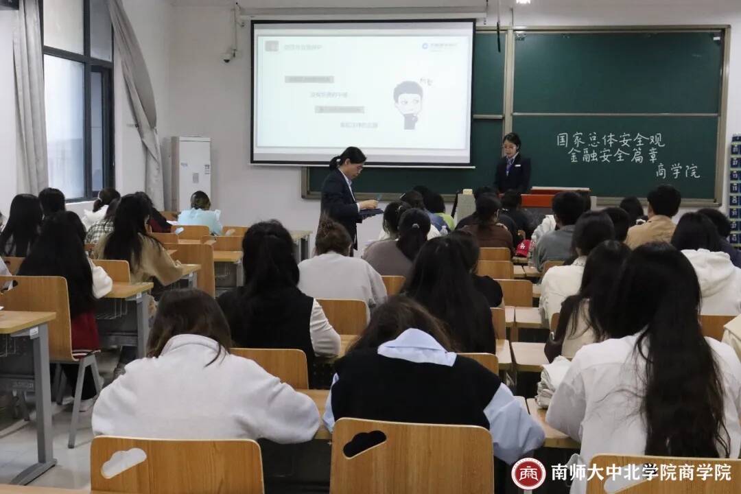 为提高我院学子总体国家安全观意识,做到安全意识在心间的教育效果, 2024年4月24日14:00,商学院于一教206开展了总体国家安全观--金融安全知识宣讲活动。本次宣讲会邀请到了中国建设银行丹阳支行团委书记邓舒婷、客户经理王燕、网点负责人殷学文先生,商学院辅导员史文老师及学生共同参加。