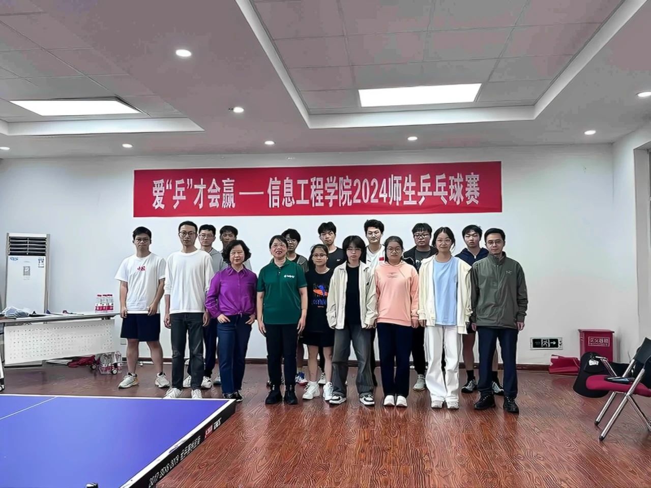 为贯彻落实体育强国战略,激发学生对于乒乓球运动的兴趣,促进师生间交流,2024年4月24日下午14:00,信息工程学院文体部在致理楼523举办爱“乒”才会赢—信息工程学院2024师生乒乓球赛。