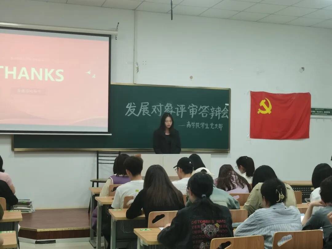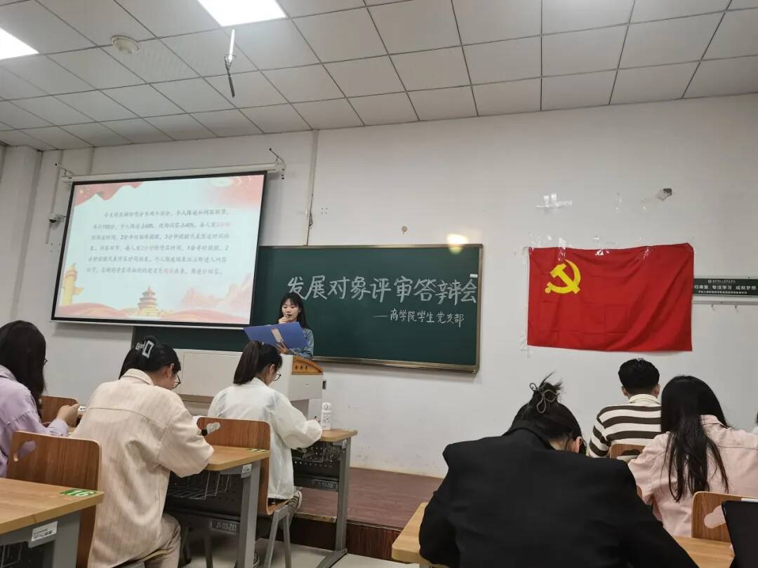 为进一步规范学生党员发展工作,确保党员发展质量,5月8日晚上18点,商学院学生党支部于一教109教室组织开展发展对象评审答辩会。出席本次评审答辩会的老师有商学院党总支书记邹慧、学生党支部书记芮锦绣和郝思捷。