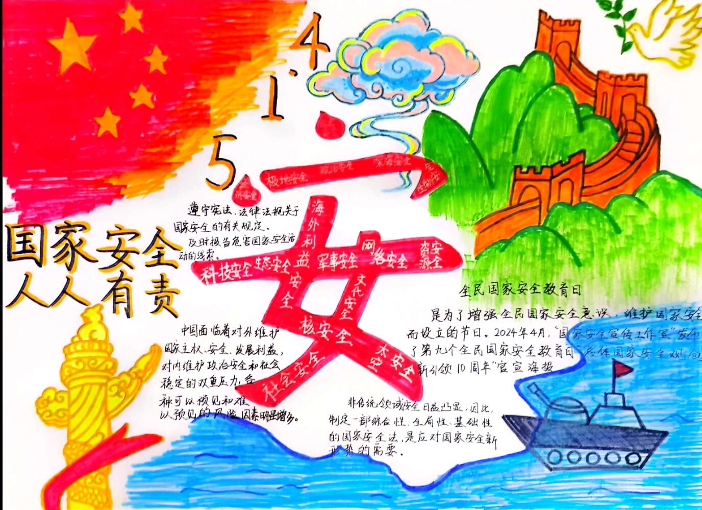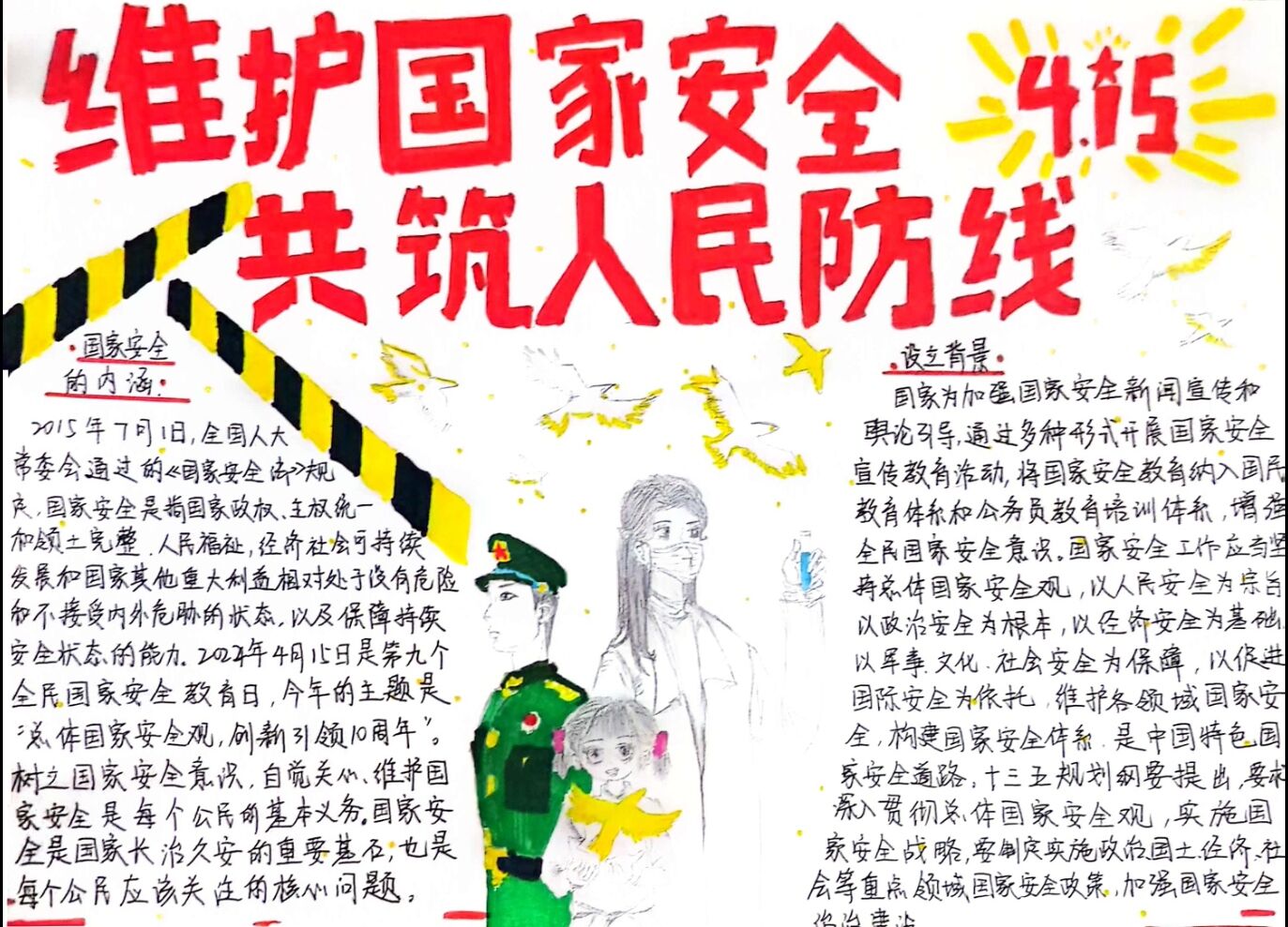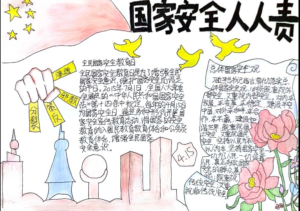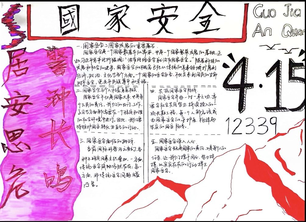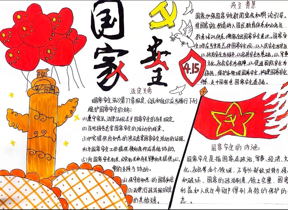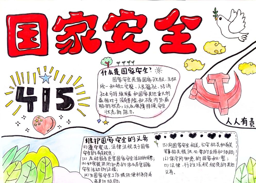 维护国家安全,共筑人民防线。通过举办手抄报活动,大家更加了解国家安全的重要性,自觉关注身边的安全隐患,增强了维护国家安全的责任感和使命感,强化了人民防线意识,为国家的安全稳定贡献力量。