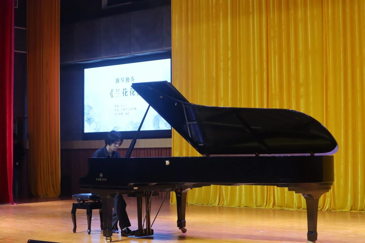 四季流转,跨越日夜;风华正茂,挥别过往。当夜的幕布缓缓拉开,一首钢琴独奏《E大调随想回旋曲》连续的双音跳音于指尖下迸发,如同夜空繁星,晶莹闪烁,奠定了轻快跳跃的情绪基调,悠扬的旋律流淌在黑白琴键,诉说着音乐的独特魅力。紧接着钢琴独奏曲《兰花花》主题音乐变化起伏较大,右手在高音区弹出的“点状”音乐主题与左手持续快速演奏的“托卡塔”遥相呼应,表现了兰花花坚定不屈、临危抗争的从容气概。《Non ti scordar di me》又像是璀璨的星辰在夜空中闪烁,旋律起伏跌宕,体现了恋人之间温柔、体贴、关怀的真挚情感,让在座的无不陶醉在热情洋溢的音乐旋律里与之共鸣。