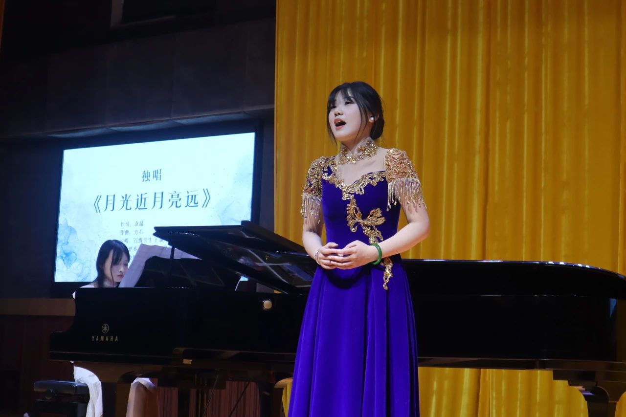 独唱《望月》温情脉脉,“月亮在天上,我在地上;就像你在海角,我在天涯。”将一种淡淡的忧伤以歌唱的形式传达给身处海角的“你”,也将思念传递给了在场的每一位观众......接着是独唱《春雨》《月亮近月亮远》,清澈纯净的嗓音,恢宏的旋律体现了民族音乐的传统美学,歌者深情地演唱瞬间博得了在场观众的阵阵掌声。