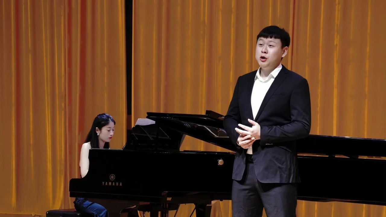 追音之遇,鸿鹄之志今始远征;循音远航,鲲鹏之飞此去凌飞。随着聚光灯缓缓亮起,倪义博同学以一首《Ombra mai fu》拉开上半场的序幕,宽广优美、陶冶人心的意大利歌曲,旋律流畅优美,气息悠长婉转,瞬间与观众拉近了心灵上的距离。紧接着是倪义博同学的两首抒情意大利歌曲《Vaga luna》《理想佳人》,他以深情的嗓音呈现出歌曲中饱含的深沉情感,让人置身于宁静而又祥和的天籁之中。王晶晶同学身着华丽演出服,为我们分别演唱了两首韩国艺术歌曲《迎接》《初恋》以及一首意大利歌曲《让我痛苦吧》。《迎接》和《初恋》是两首在韩国传唱度很高的艺术歌曲,曲子中蕴含着浪漫温暖的情绪,都围绕着爱情这一永恒的主题。歌曲《迎接》表达了对爱情的无奈惋惜与痛心,而《初恋》则讲述了一段美好却又不幸的的爱情故事,通过这种对爱情复杂情感的探索和具有文学性的歌词,使得歌曲具有很强的感染力,给人不仅仅是听觉的享受,更是心灵的触动。两位同学的精湛的演唱技法和充分的情感引起全场阵阵掌声。