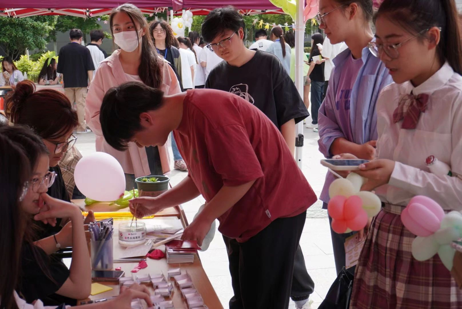 通过参与特色活动,同学们可以获得积分,当累积到8积分时,同学们便可以获得一把DIY漆扇或者一张现拍的拍立得照片。选择漆扇的同学们都创作出了满意的DIY扇子。而选择拍立得的照片的同学们在镜头下都展现出了自己最完美的姿态,将这快乐的一天定格在照片里。