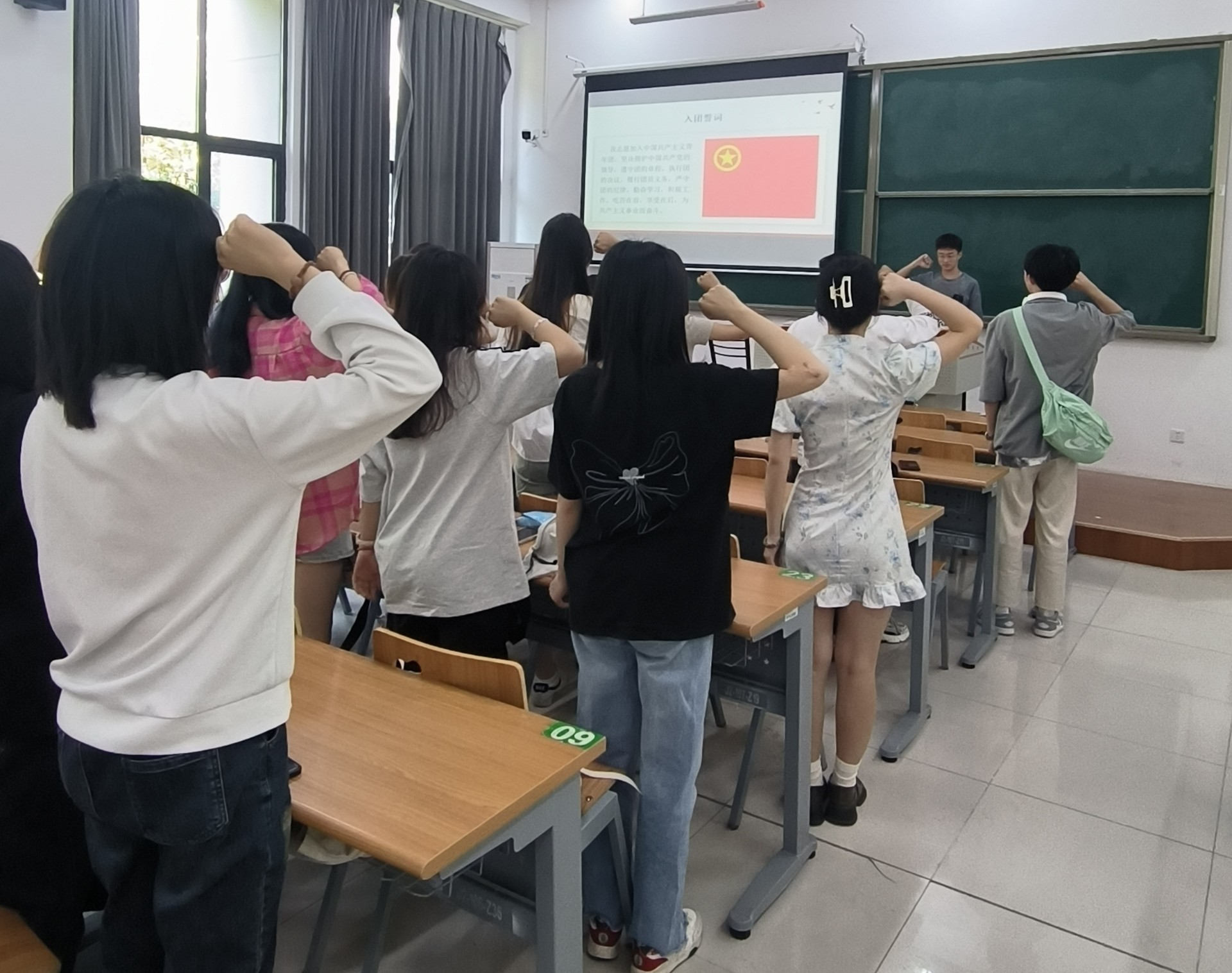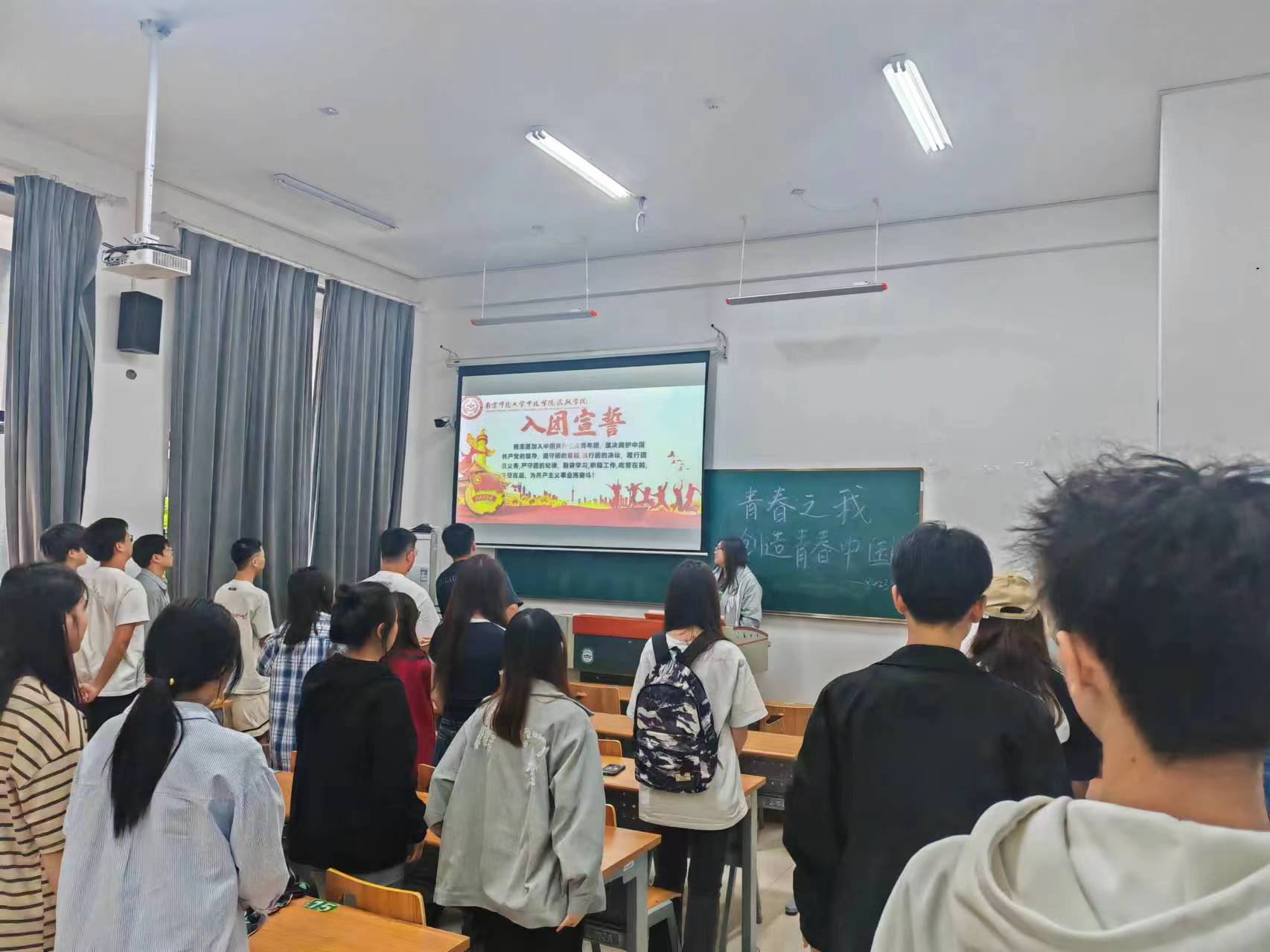 活动开始之前,同学们奏唱国歌、重温入团誓词。