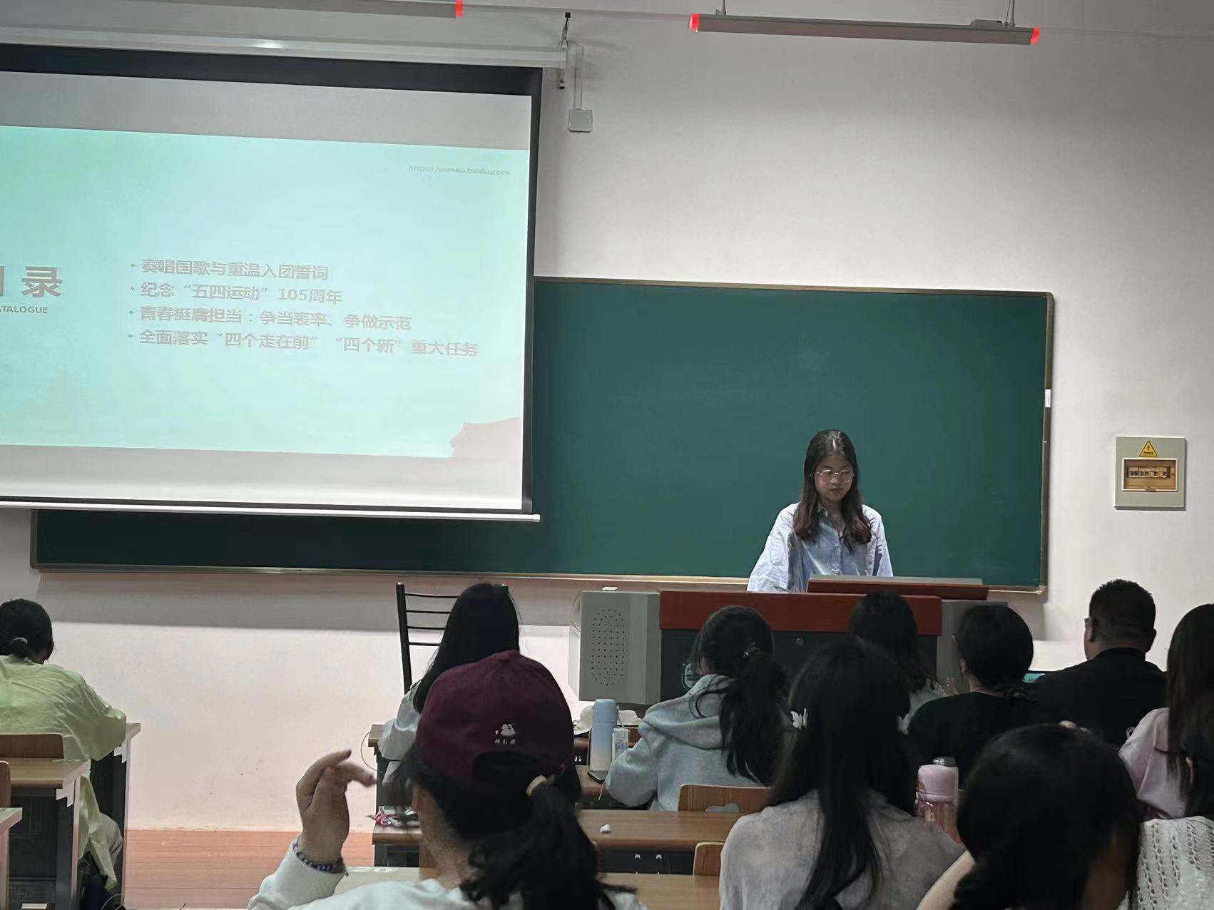 活动中各团支书带领同学们一起学习了“四个走在前”“四个新”的含义及重要意义,重温了五四运动的光辉历程,深刻领悟了五四精神的时代内涵。