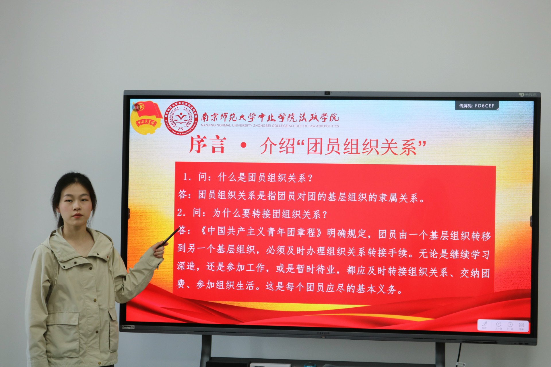 随后,张茜茜同学为各位团支书解读了毕业生团组织关系转接教程,这也是本次会议的重点,她将转接过程分为两个部分,分别讲解了团支书和团员在转接工作中需要完成的工作以及注意事项。